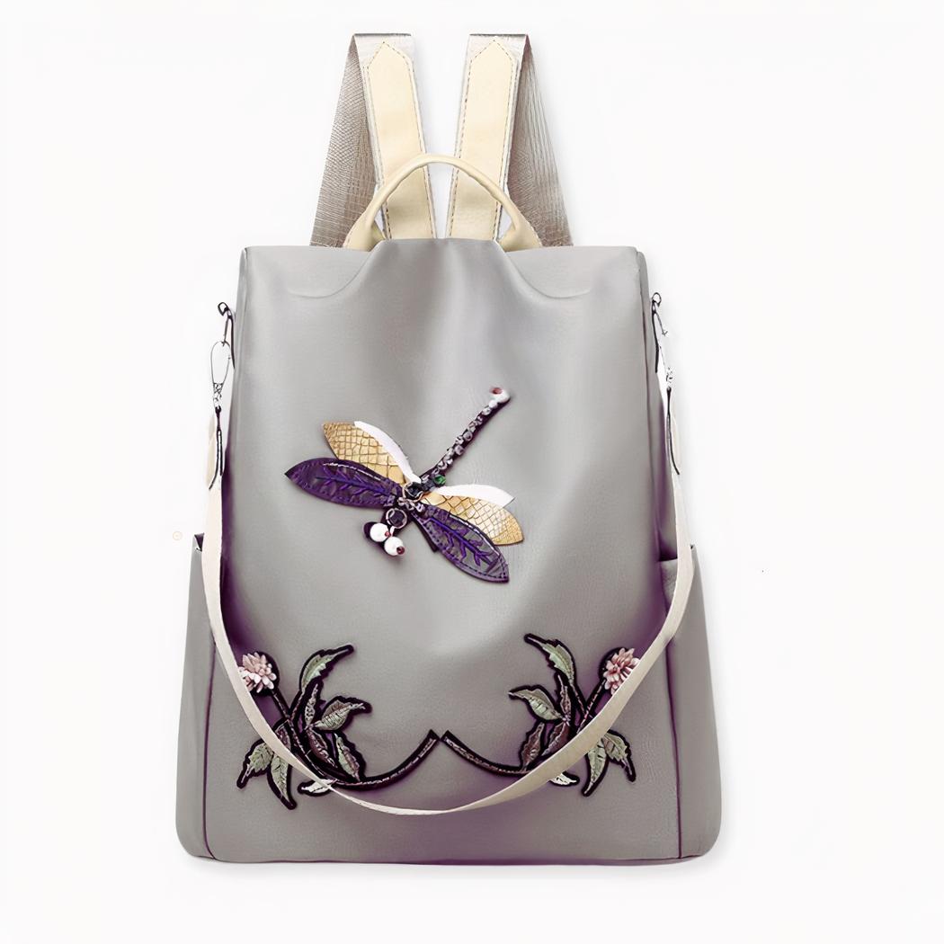 Descubra esta mochila bordada con motivos de flores y mariposas para mujer de estilo clásico. Con su original motivo de mariposas, esta mochila gustará a las mujeres que buscan originalidad. Esta mochila aportará un toque elegante a su look.