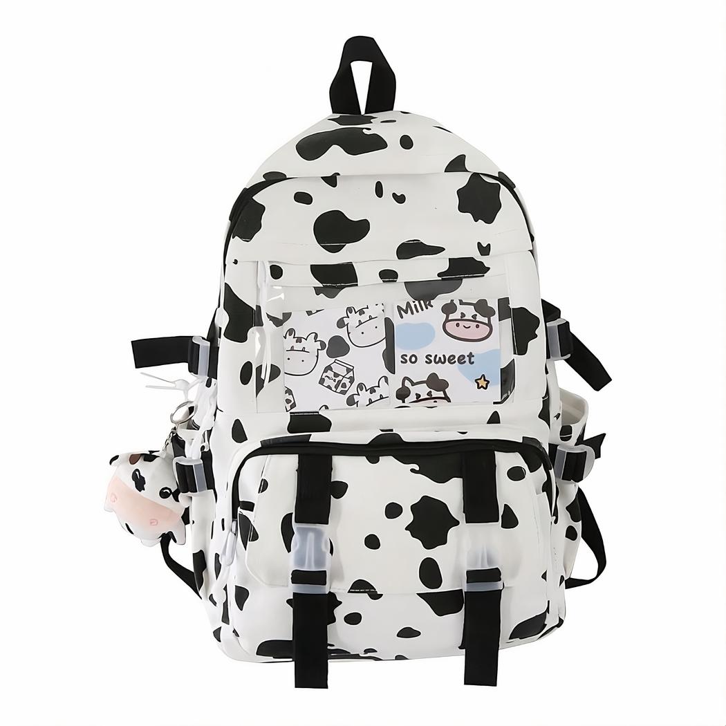 Elija esta mochila con estampado de vaca para dar un toque de originalidad a su vida cotidiana. Esta mochila es espaciosa, con varios compartimentos de almacenamiento. Es perfecta para niños a partir de secundaria, pero también es ideal para adultos en movimiento.