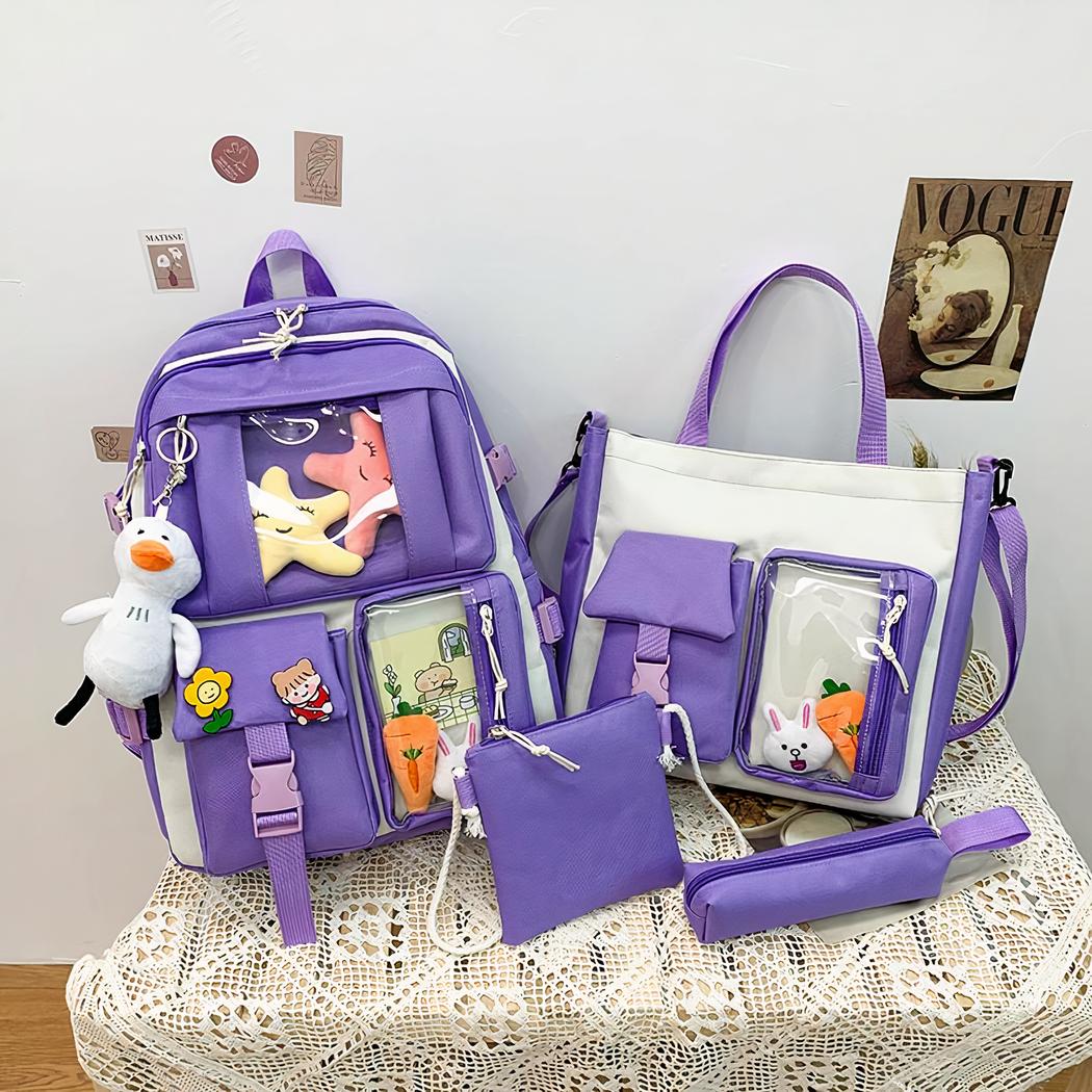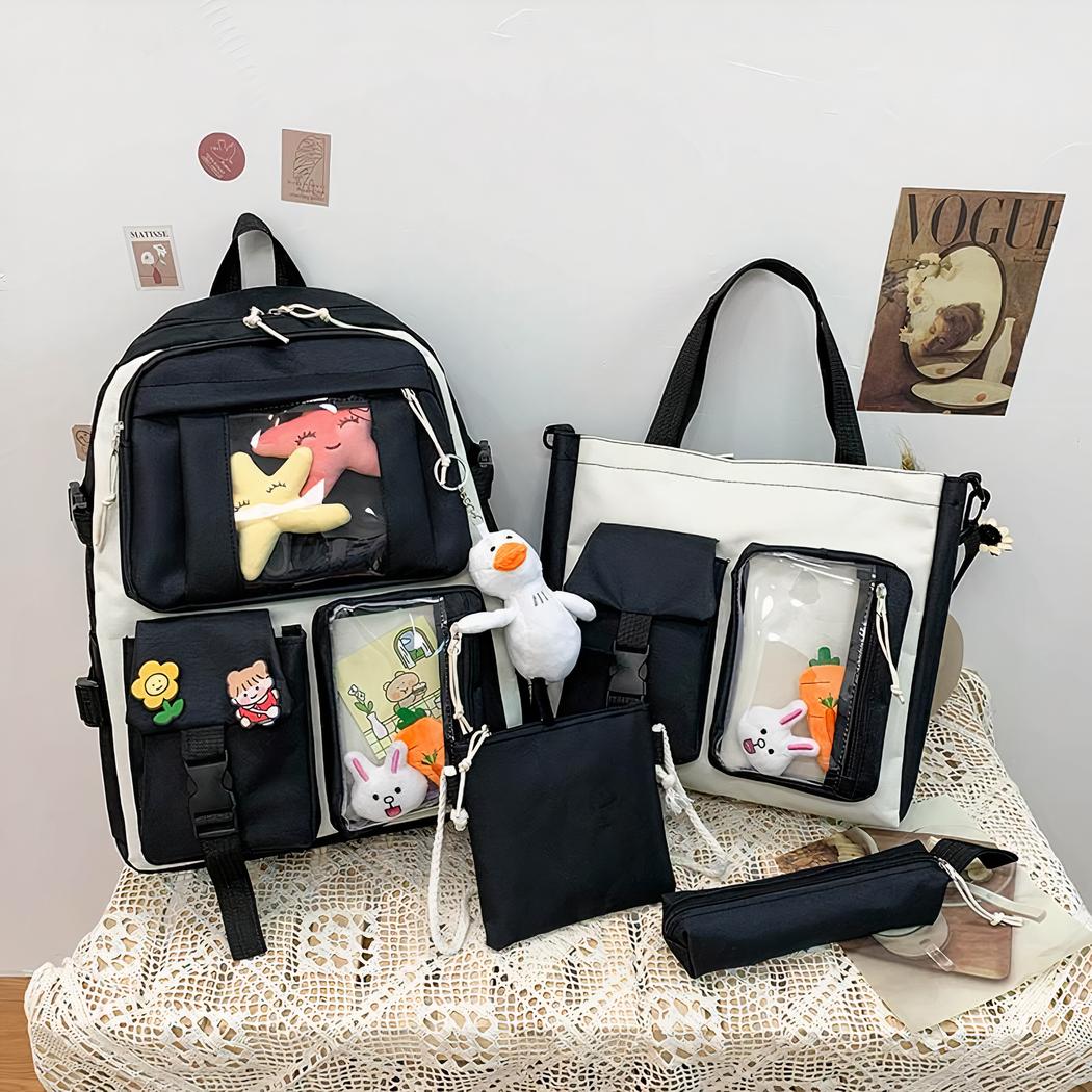 ¡Enamórese de este juego de mochilas de cinco piezas en moderno y suave Oxford! Disponibles en cuatro colores, estas mochilas son ideales para pasear por la ciudad, trabajar o viajar. Con multitud de bolsillos, podrá llevar todo lo esencial con facilidad, al tiempo que mantiene las manos libres y la mente ligera.