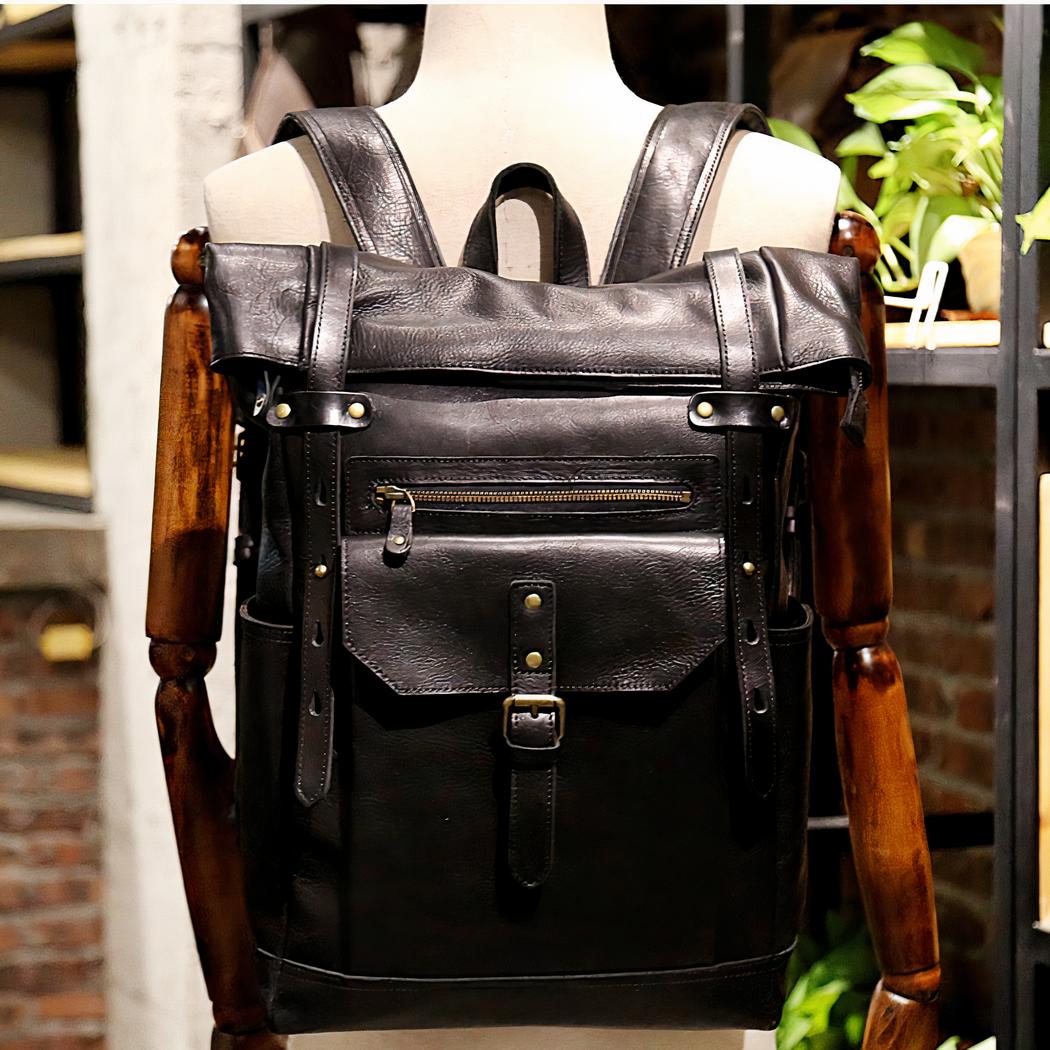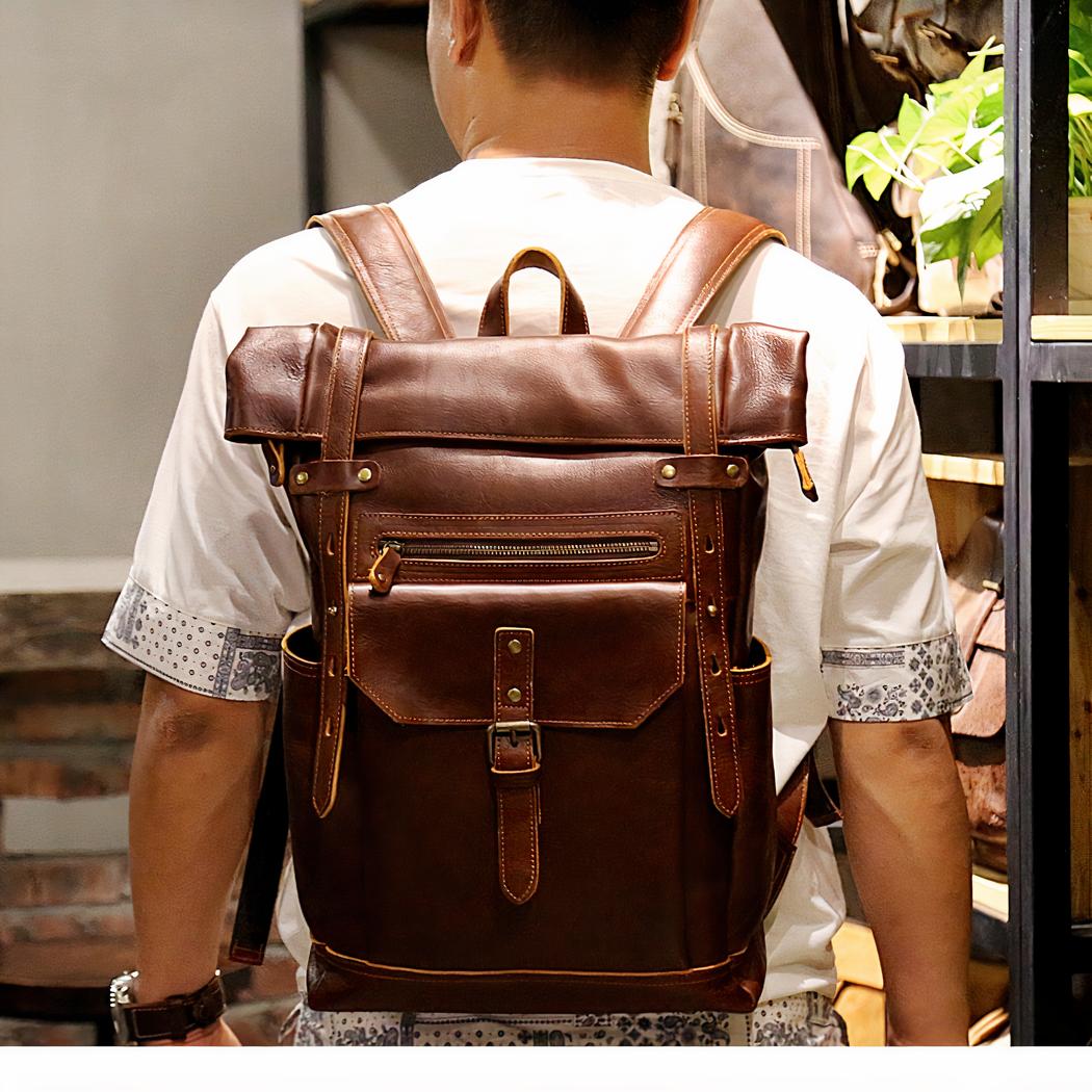 Esta mochila de estilo vintage es una mochila de cuero para bicicleta.