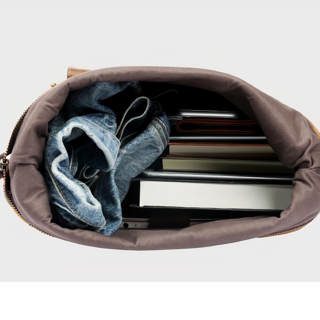La parte trasera de la bolsa está acolchada para mayor comodidad. Esta sofisticada mochila tiene muchos bolsillos y un interior espacioso, y puede contener hasta 35 litros.