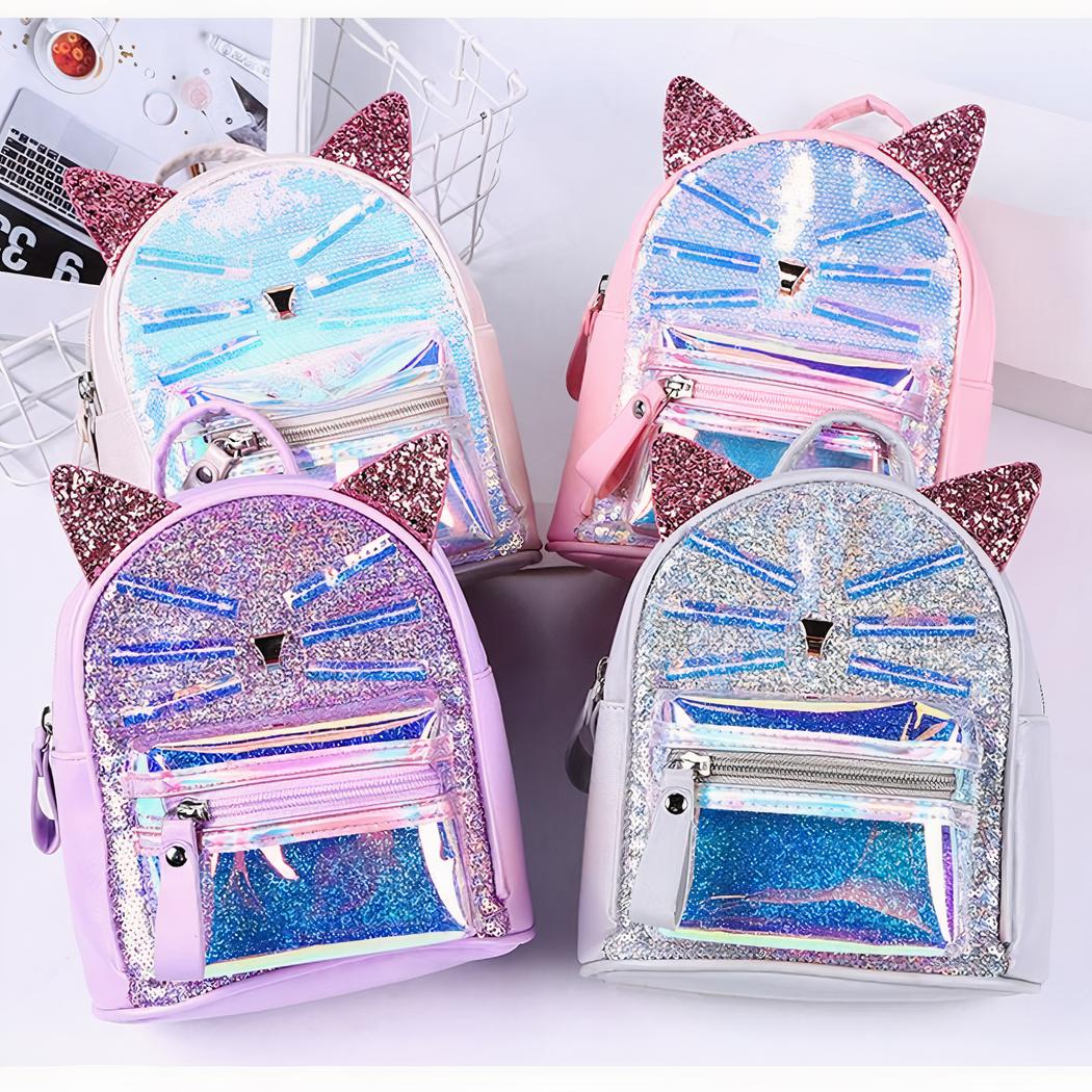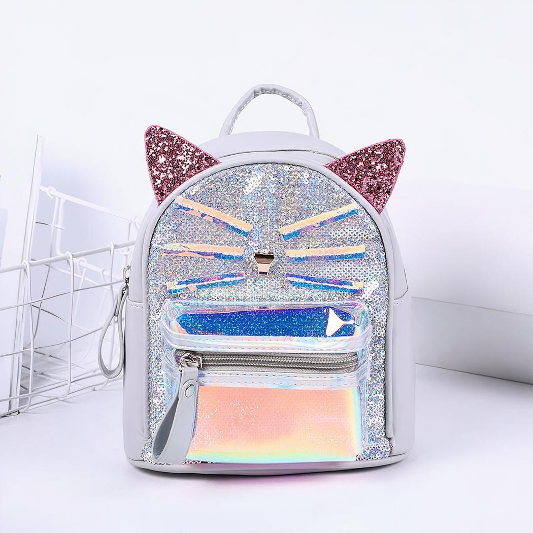 ¡Presentamos la mochila súper glitter para gatos! Esta bonita y elegante mochila es perfecta para todos los amantes de los gatos que se preocupan por la moda. La mochila está hecha de piel sintética adornada con mucha purpurina. Perfecta para las pequeñas fashionistas.