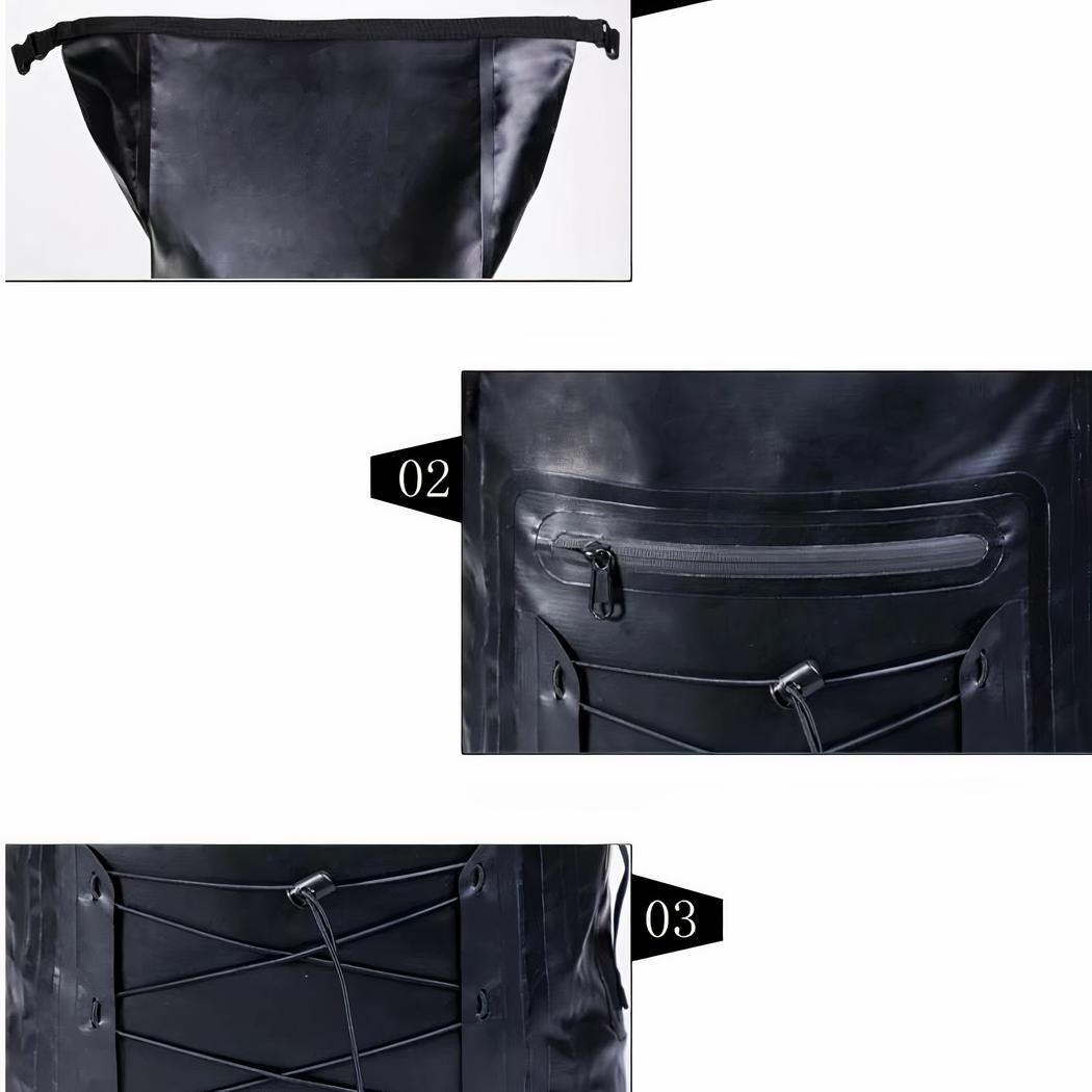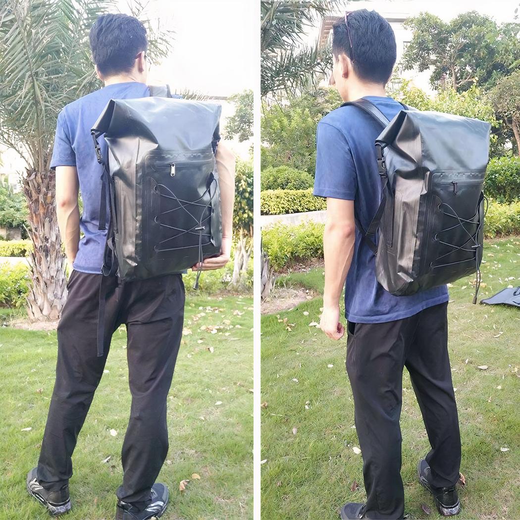 ¿Le gustan los deportes acuáticos? Entonces esta mochila de natación negra de 30L es para usted Es una mochila de senderismo con un diseño sobrio y elegante que gustará a muchos. Fabricada en PVC, también es extremadamente impermeable.