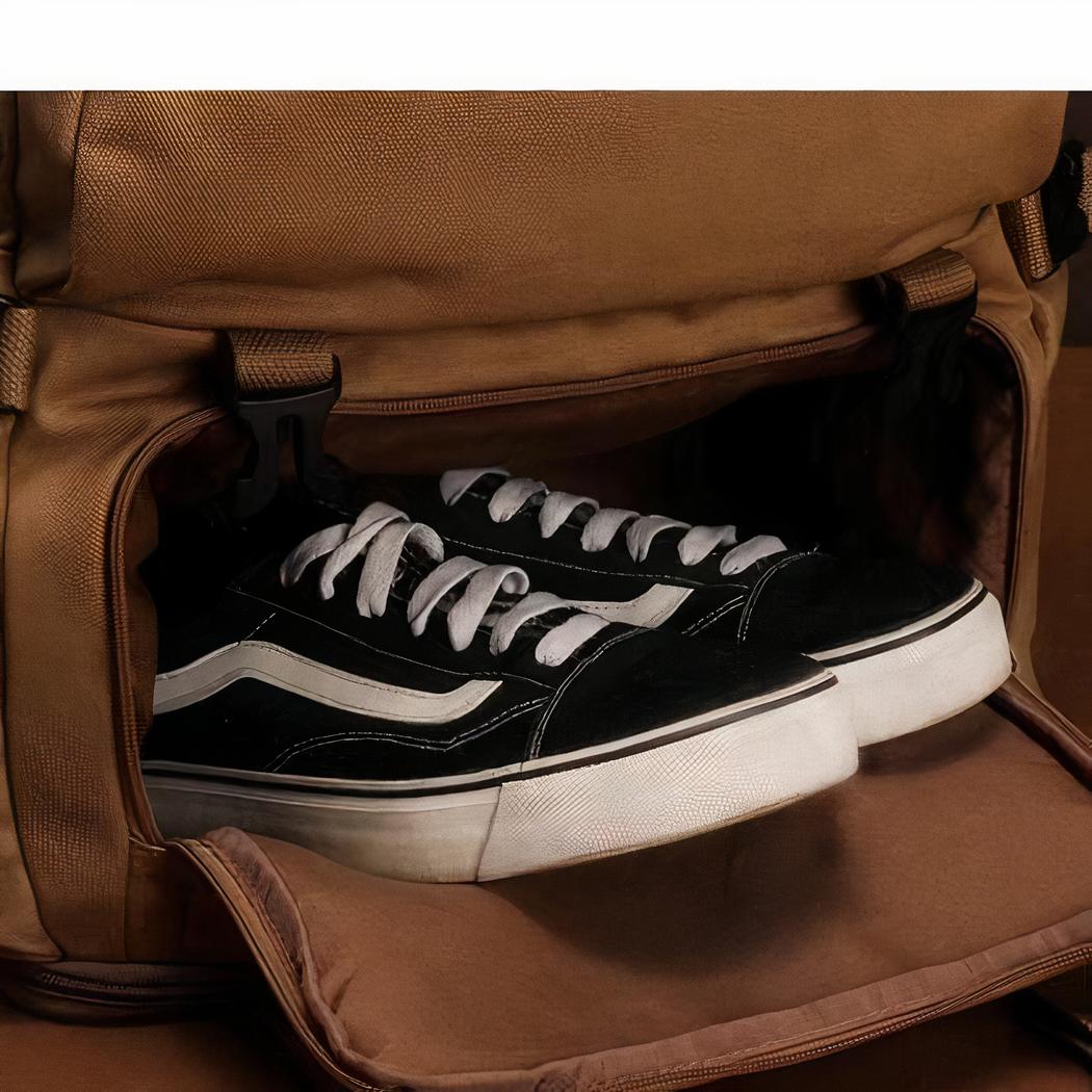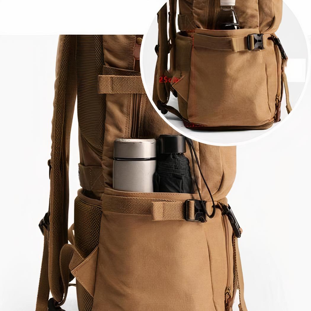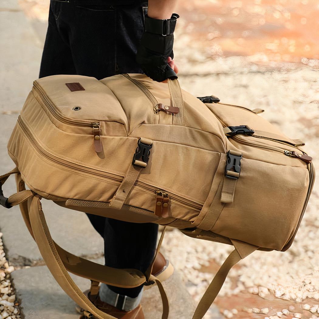 Descubra esta mochila de viaje de lona de estilo militar con la opción de extenderse para disponer de más espacio de almacenamiento. Con refuerzos para una mejor sujeción, un pasamuros para sus auriculares y múltiples compartimentos de almacenamiento independientes, es perfecta para acompañarle en todas sus aventuras.