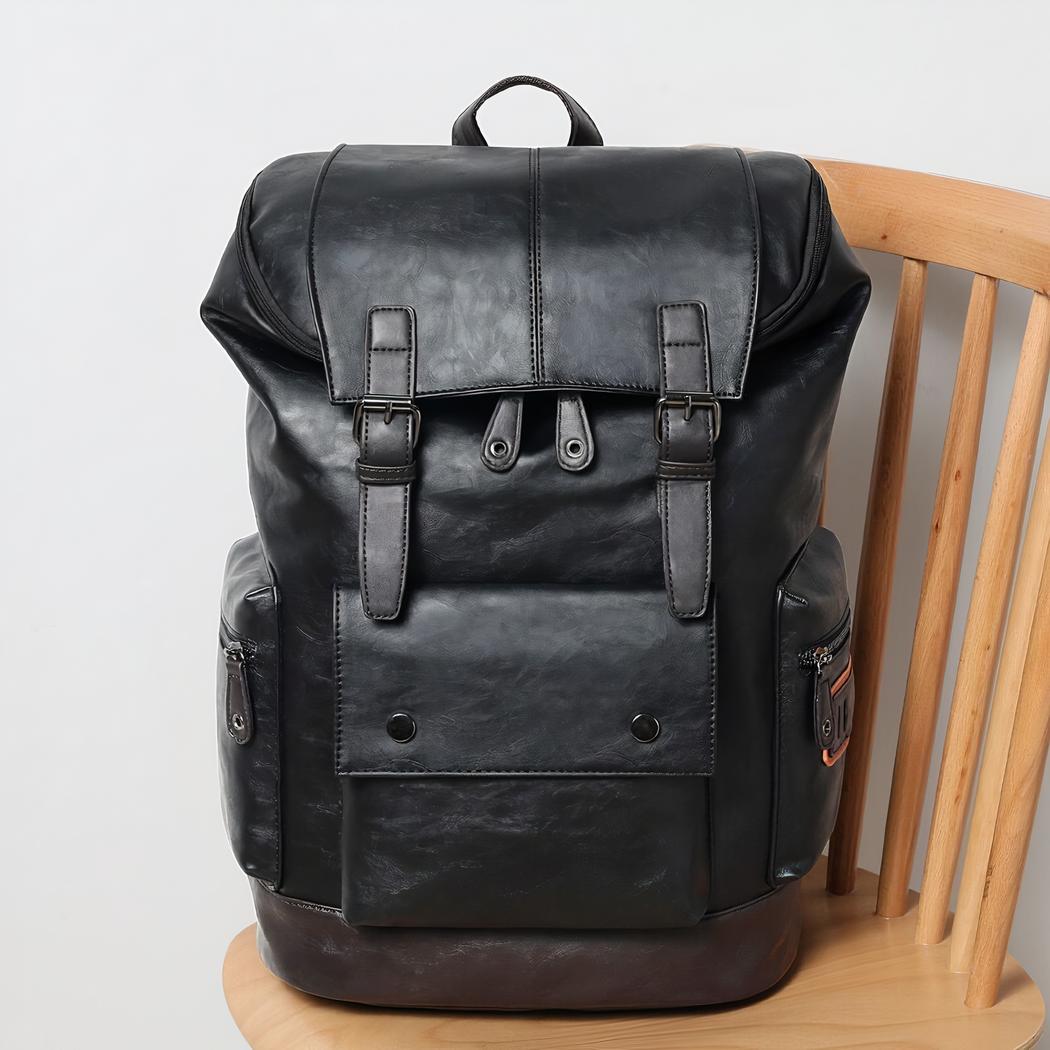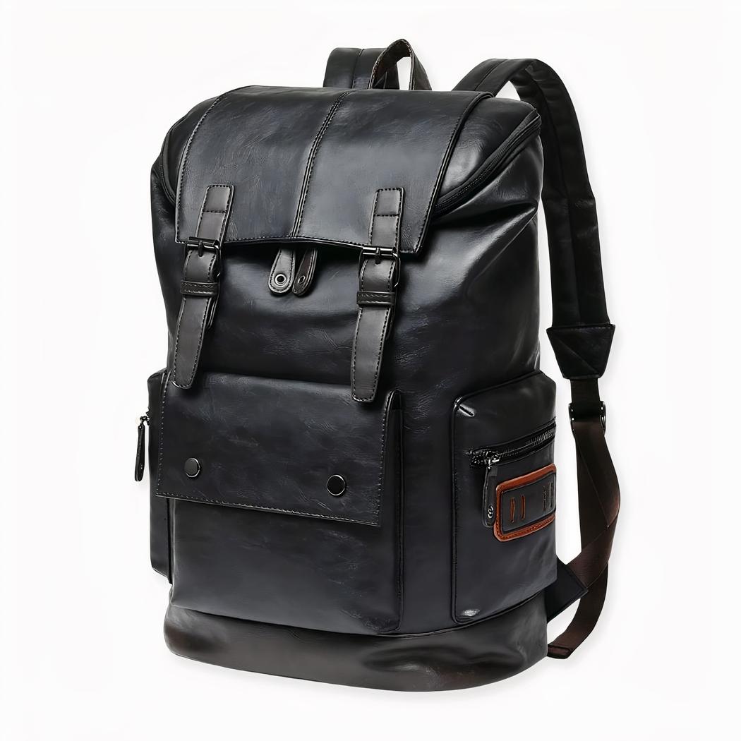 Esta mochila de viaje de polipiel negra es perfecta para sus desplazamientos. Está diseñada para ser resistente y duradera, con costuras reforzadas y piel de primera calidad que la hacen capaz de soportar las condiciones más duras. El diseño ergonómico de la mochila garantiza una distribución equilibrada del peso.