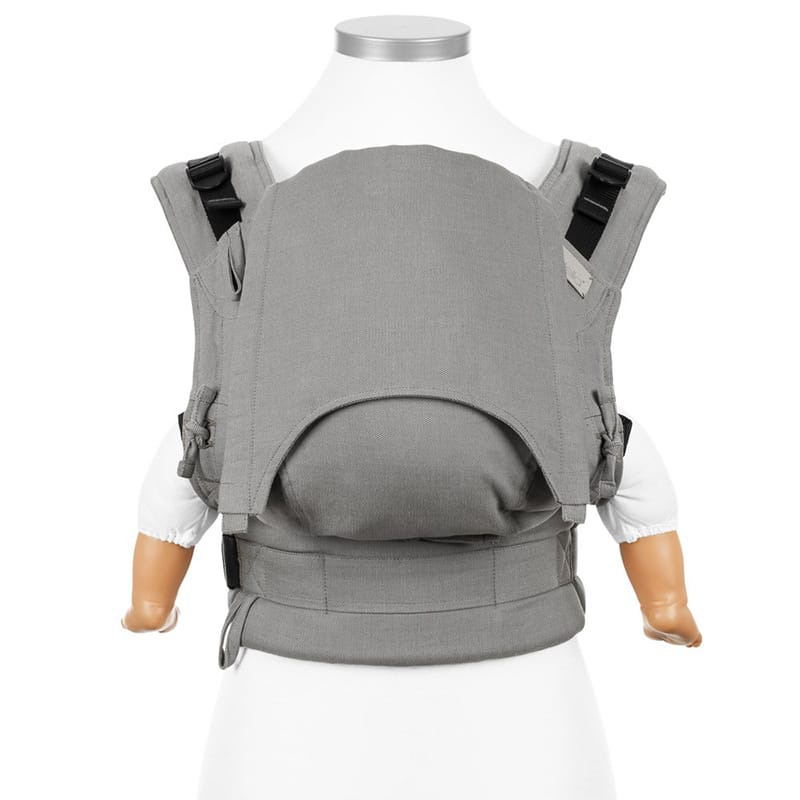 La capucha de la mochila de porteo Fidella se encuentra integrada útil para tapar de cara al sol y para sujetarle la cabeza cuando se duerme tu bebé.