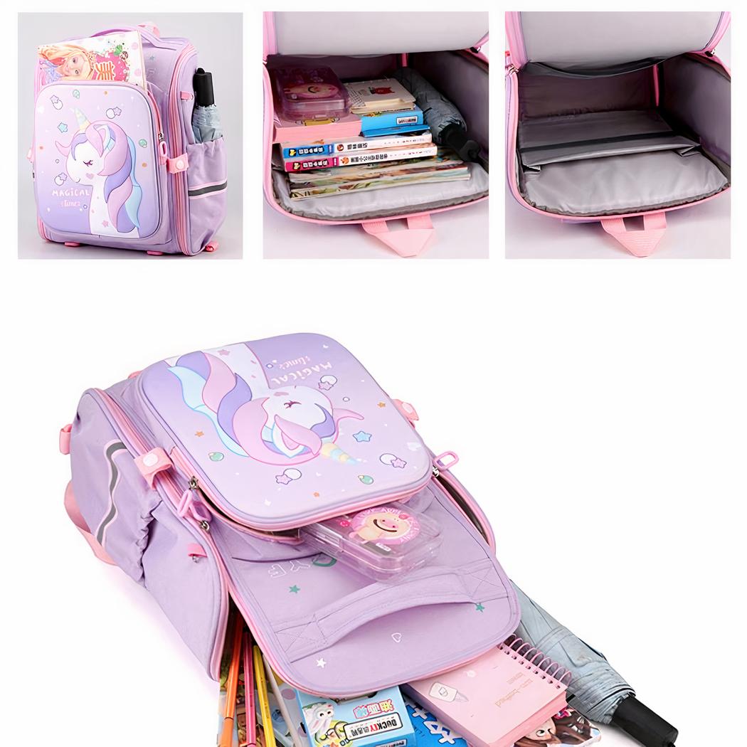 Esta mochila impermeable de unicornio rosa para niñas es perfecta para llevar a su hija al colegio. Está fabricada con materiales duraderos y resistentes al agua, lo que la hace práctica para los días de lluvia. La resistente cremallera permite acceder fácilmente a los objetos de su interior.