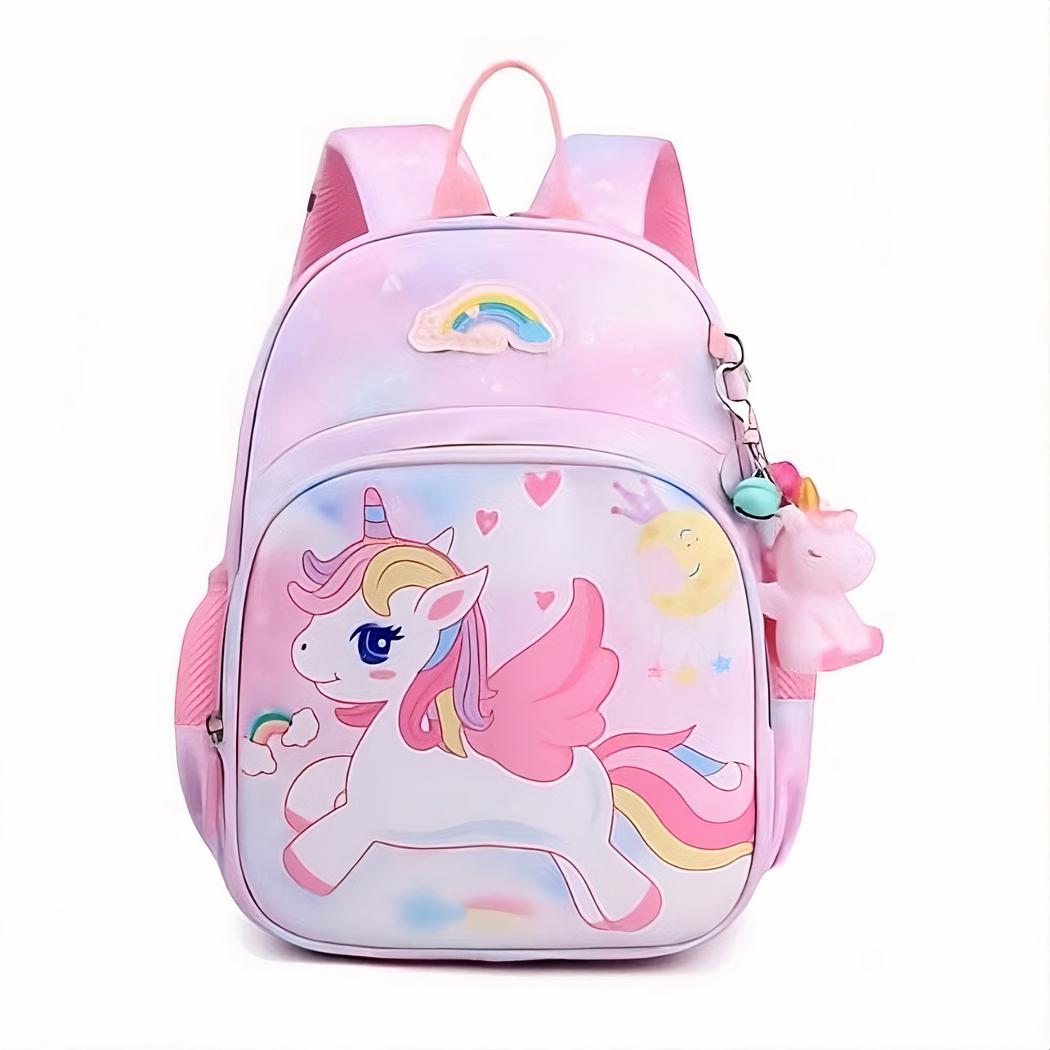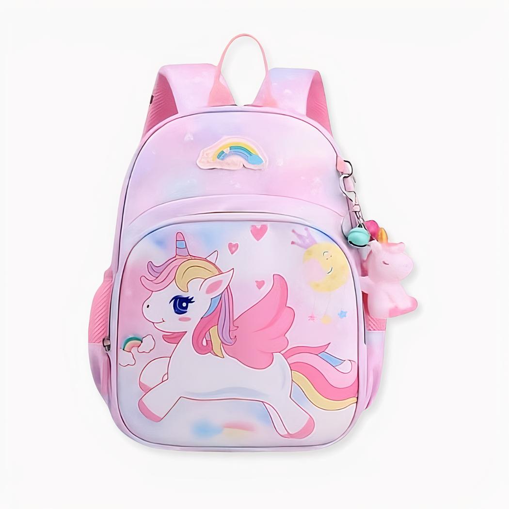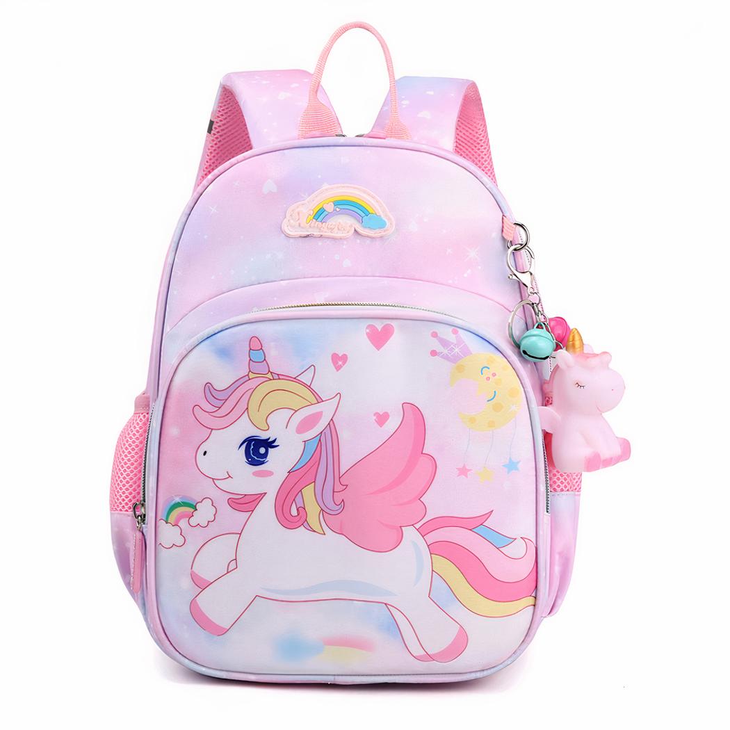Esta mochila escolar de unicornio volador rosa para niñas es perfecta para las pequeñas a las que les encanta el mágico mundo de los unicornios. Con su color rosa pastel y sus motivos de unicornios voladores, esta mochila escolar hará las delicias de las niñas. Está fabricada con un tejido resistente y duradero.