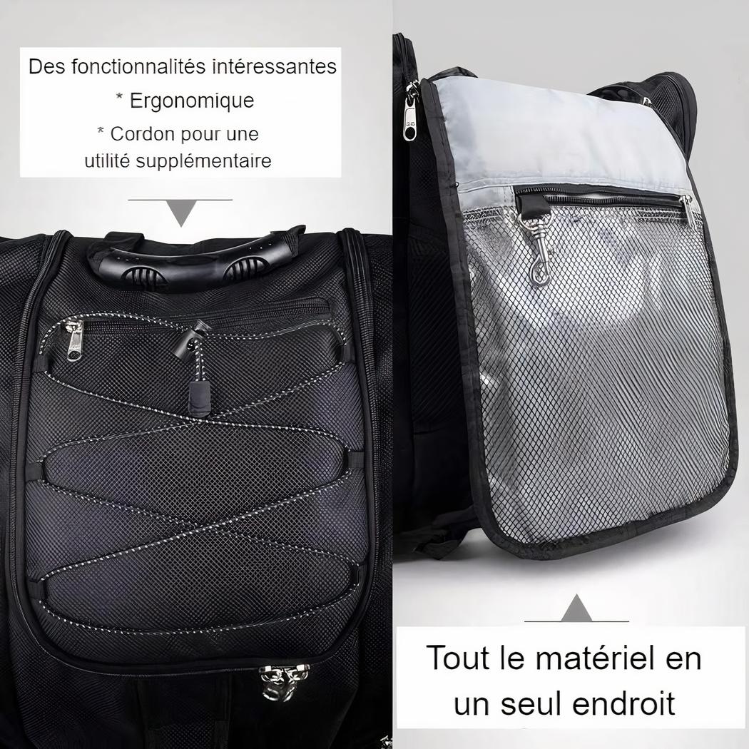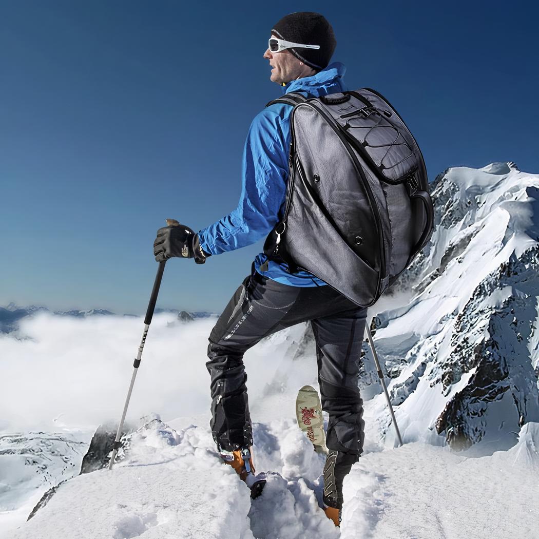 Descubra esta gran mochila impermeable para botas de snowboard o esquí. Muy resistente, impermeable y con ojales de ventilación, su equipo estará protegido. También dispone de un bolsillo para gafas. La espalda está totalmente acolchada para mayor comodidad.