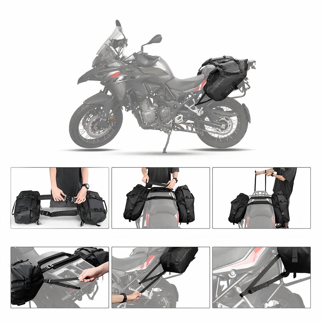 Descubra nuestra mochila universal impermeable para moto de 28 l, fabricada con tejido impermeable muy resistente a los impactos. Resistente al desgaste, tiene una capacidad total de 28 L, son dos piezas de 14 L cada una, es fácil de limpiar y se seca rápidamente.