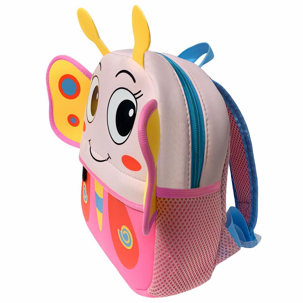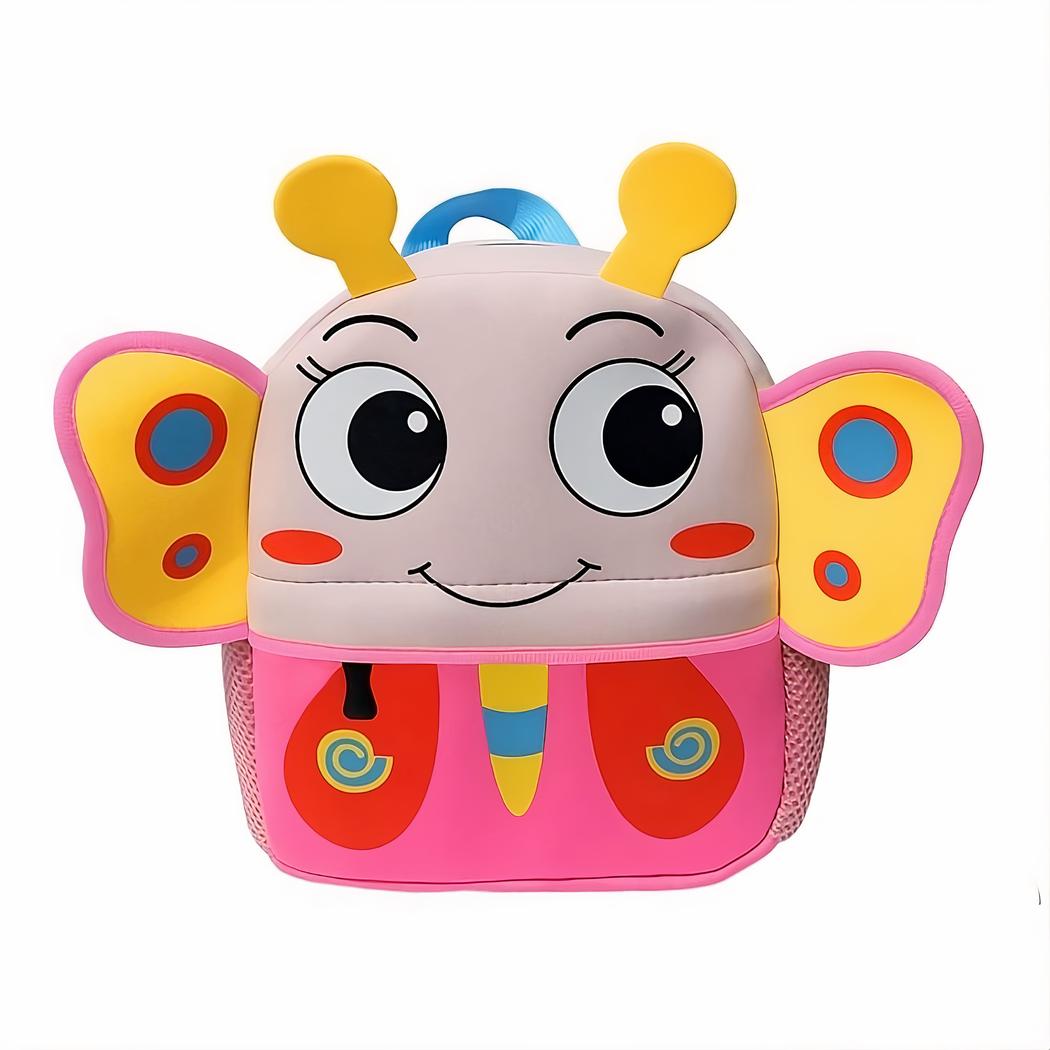Esta mochila infantil con forma de mariposa combina un diseño divertido y funcionalidad. Sus vivos colores y su cara sonriente seguro que atraen a los más pequeños. Espaciosa y práctica, tiene un compartimento principal resistente y fácil de limpiar, y correas ajustables para los hombros que ofrecen una comodidad óptima. Ideal para las aventuras cotidianas.
