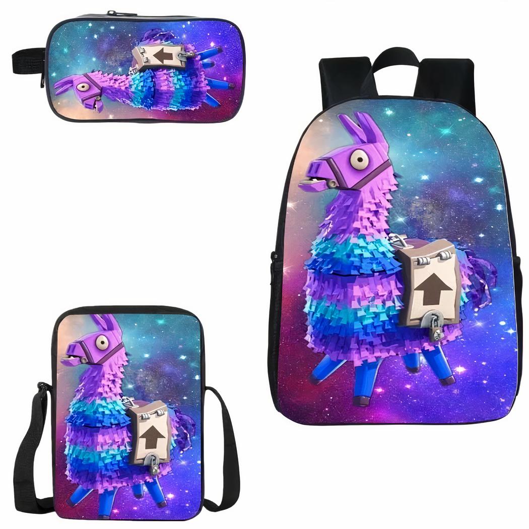 Si busca una mochila para la vuelta al cole elegante, cómoda y práctica, la mochila llama Fortnite con accesorios a juego es perfecta para su hijo. Este set de tres piezas incluye una mochila, un estuche y una cartera con el mismo motivo de Fortnite.