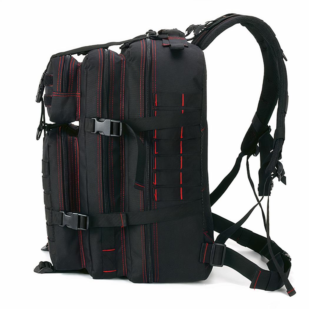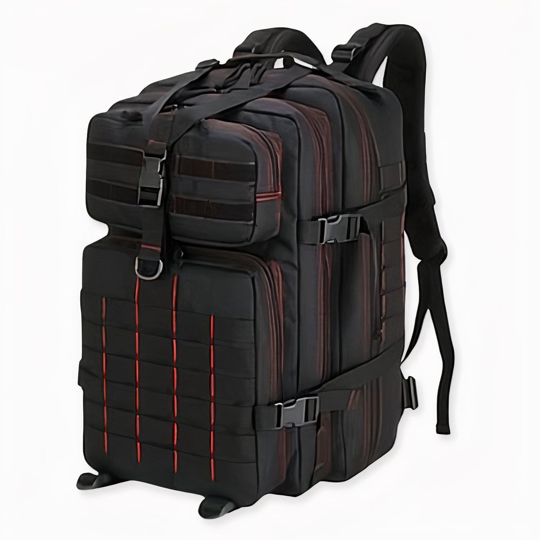Una mochila militar negra impermeable con una capacidad de 50 litros para todas sus aventuras. Muy robusta, con varias correas para ajustar la mochila, el peso le resultará mucho más fácil de llevar. Su capacidad de 50 litros le permitirá llevar todo lo que necesite.