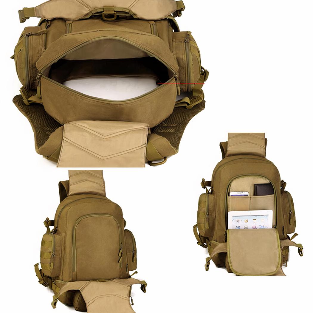 Descubra esta mochila militar multifuncional 3 en 1 con una capacidad de 40 litros, perfecta para todas sus actividades al aire libre. Sus compartimentos extraíbles son una gran característica. Extremadamente resistente, también dispone de varios compartimentos de almacenamiento, incluso para su equipo digital. Así que ¡adelante!