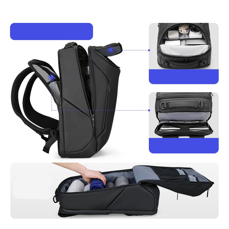 Mochila multifuncional repelente al agua con tres bolsillos para el portátil