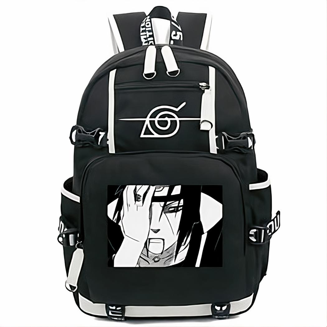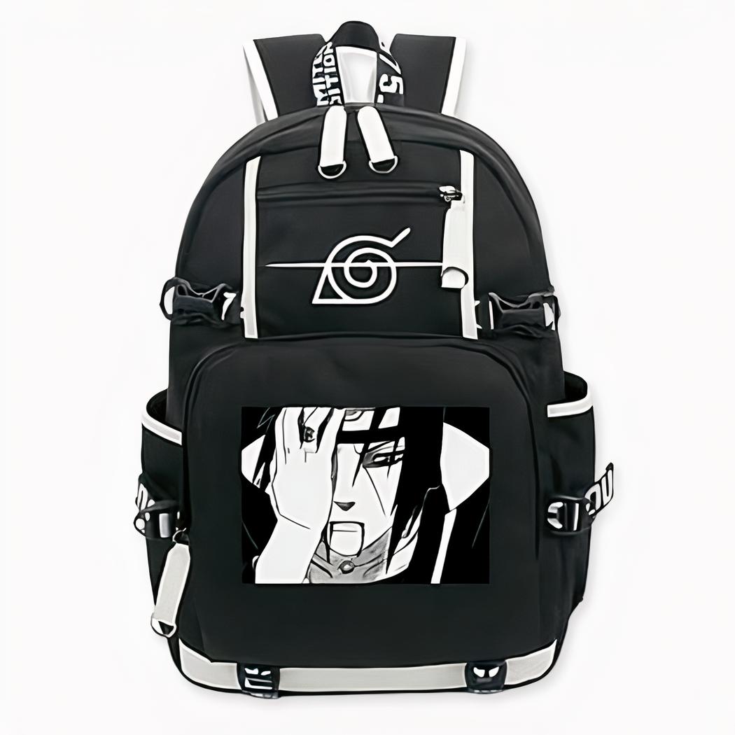 Mochila negra de Naruto con motivo de Itachi Uchiwa