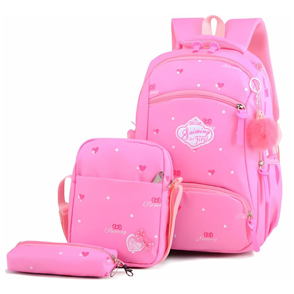Con tres accesorios a juego y una variedad de colores, esta mochila es funcional y moderna. Cómoda y resistente, es perfecta para el colegio o para llevar durante los fines de semana. Un conjunto ideal para quienes buscan combinar practicidad y elegancia en su rutina diaria.