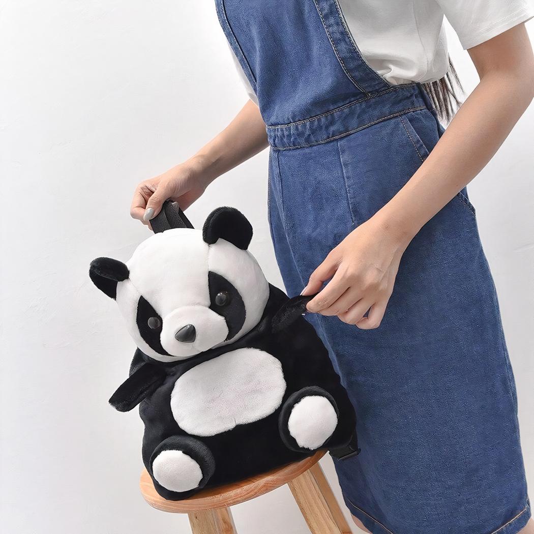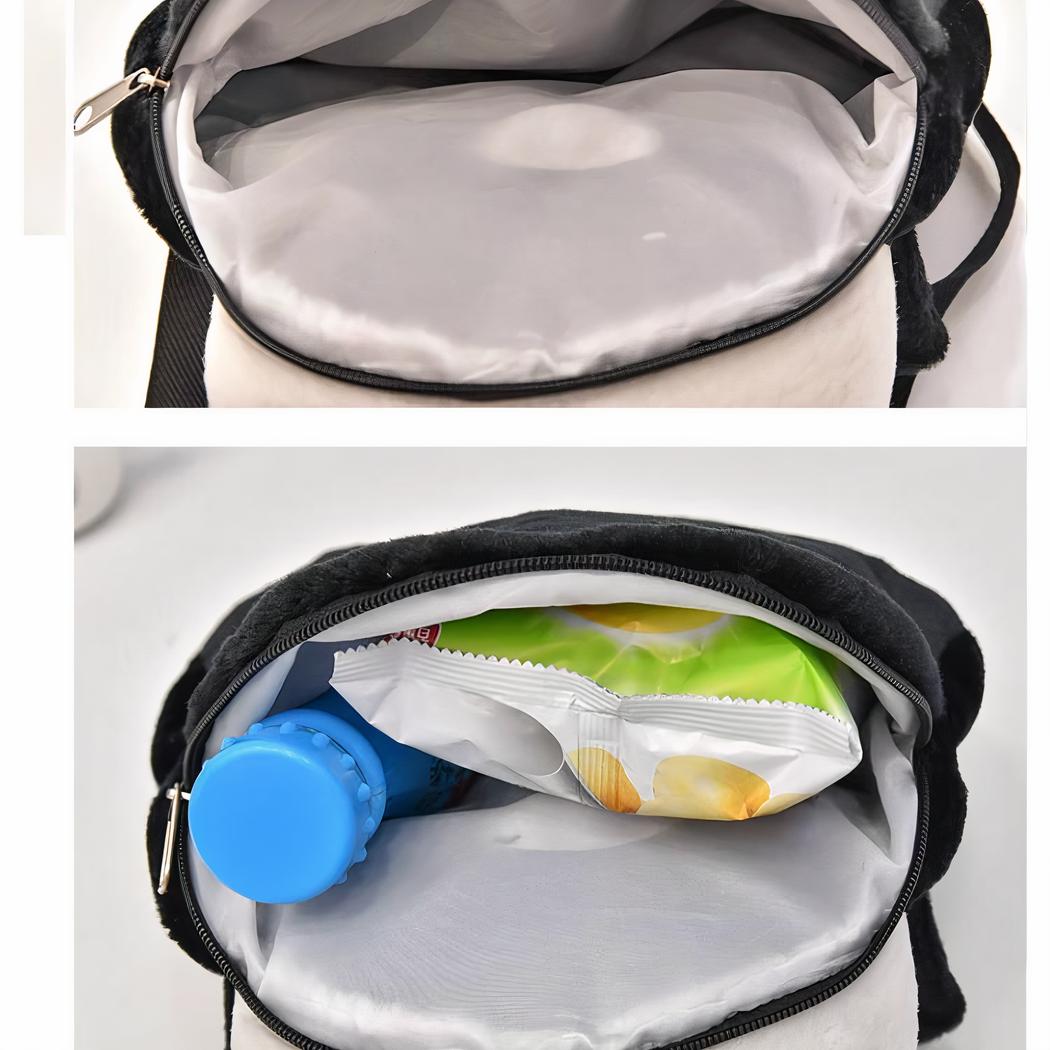 Descubra nuestra mochila panda de felpa. Este simpático compañero en blanco y negro permite a su hijo llevar sus juguetes o su merienda. Perfecta para la guardería, es suave y reconfortante para los pequeños escolares. ¡Regale esta mochila para la vuelta al cole!