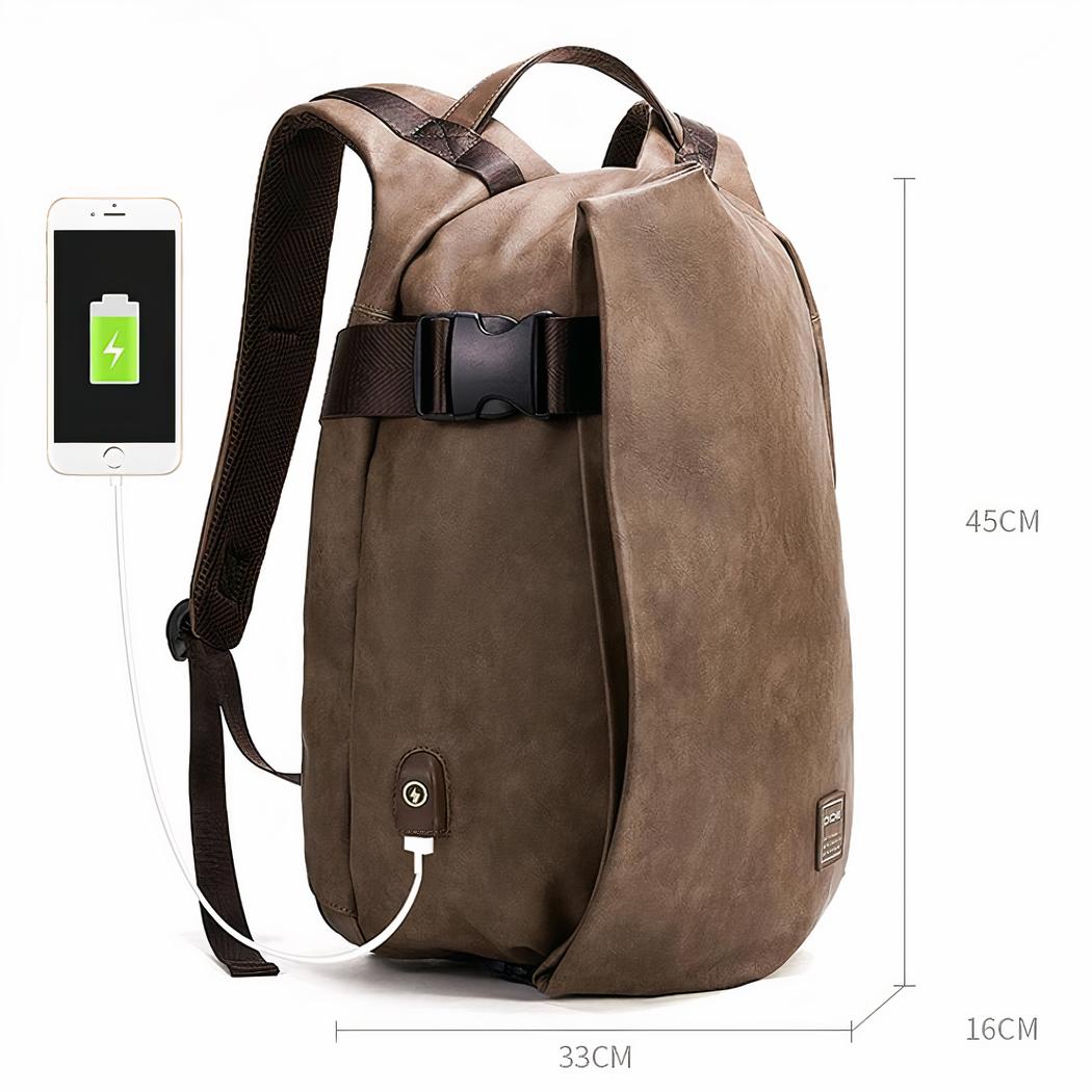Esta mochila para portátil de 15” en polipiel ha sido diseñada para transportar su ordenador portátil. Su bolsillo trasero principal se abre para introducir su portátil en su interior, mientras que la parte delantera tiene un bolsillo con capacidad para 20 litros. Esta mochila también tiene un puerto USB 3.0 en el lateral.