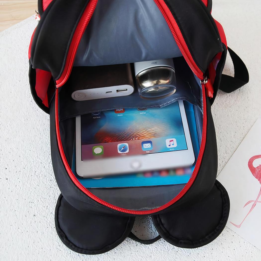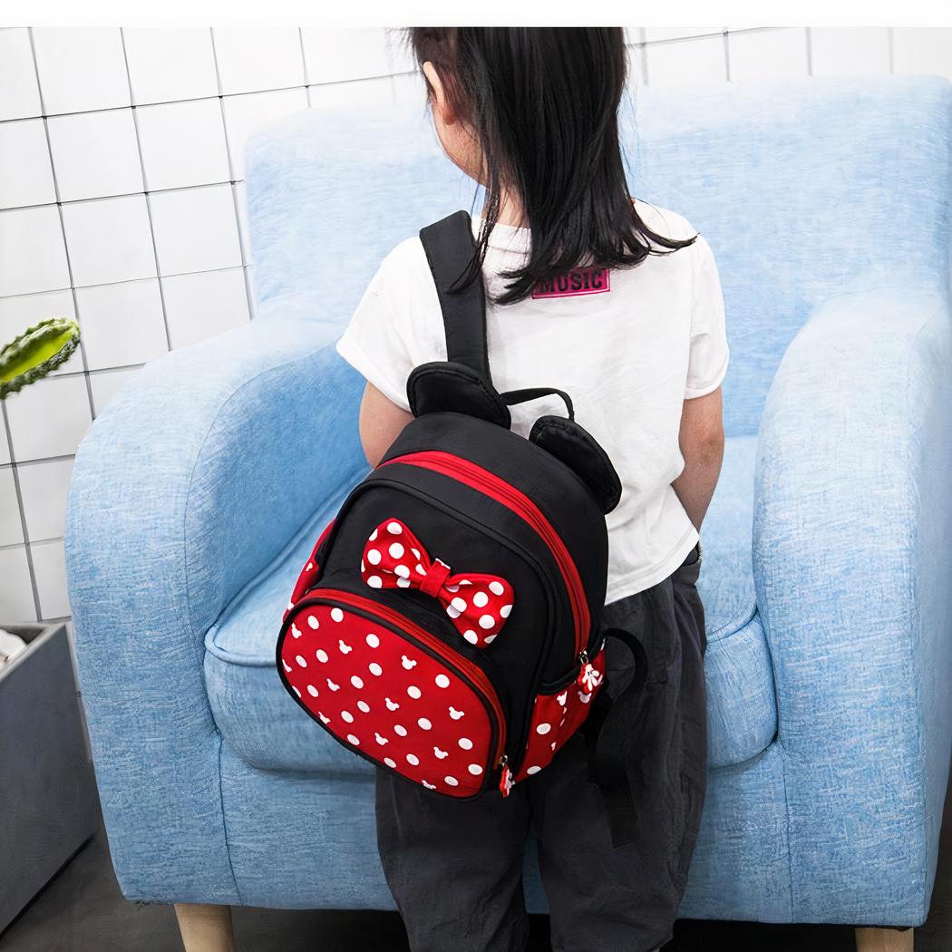 Esta pequeña mochila roja y negra de Minnie Mouse combina encanto y funcionalidad. Con su diseño inspirado en Minnie, su estampado de lunares y sus materiales duraderos, es perfecta para los jóvenes fans de Disney. Las correas acolchadas para los hombros y los amplios compartimentos garantizan comodidad y practicidad.