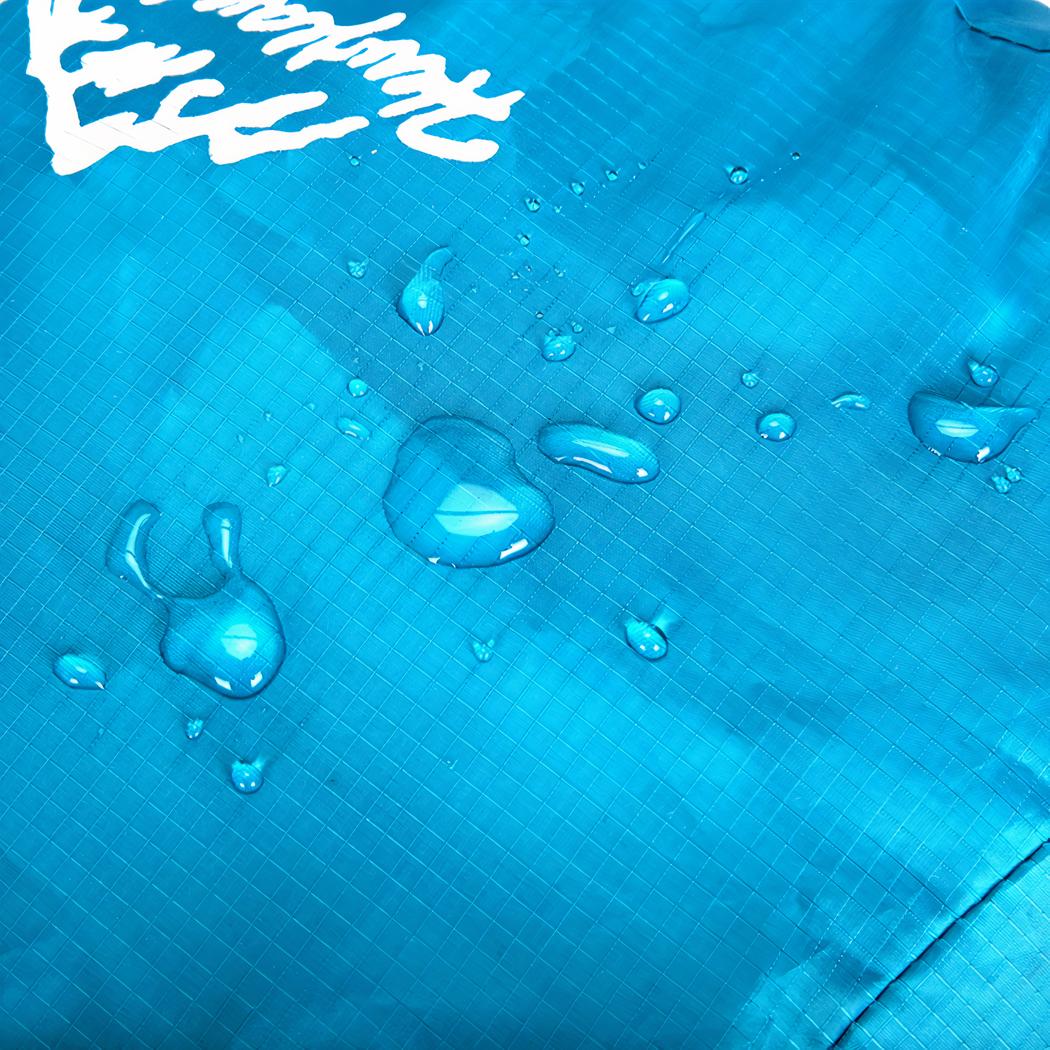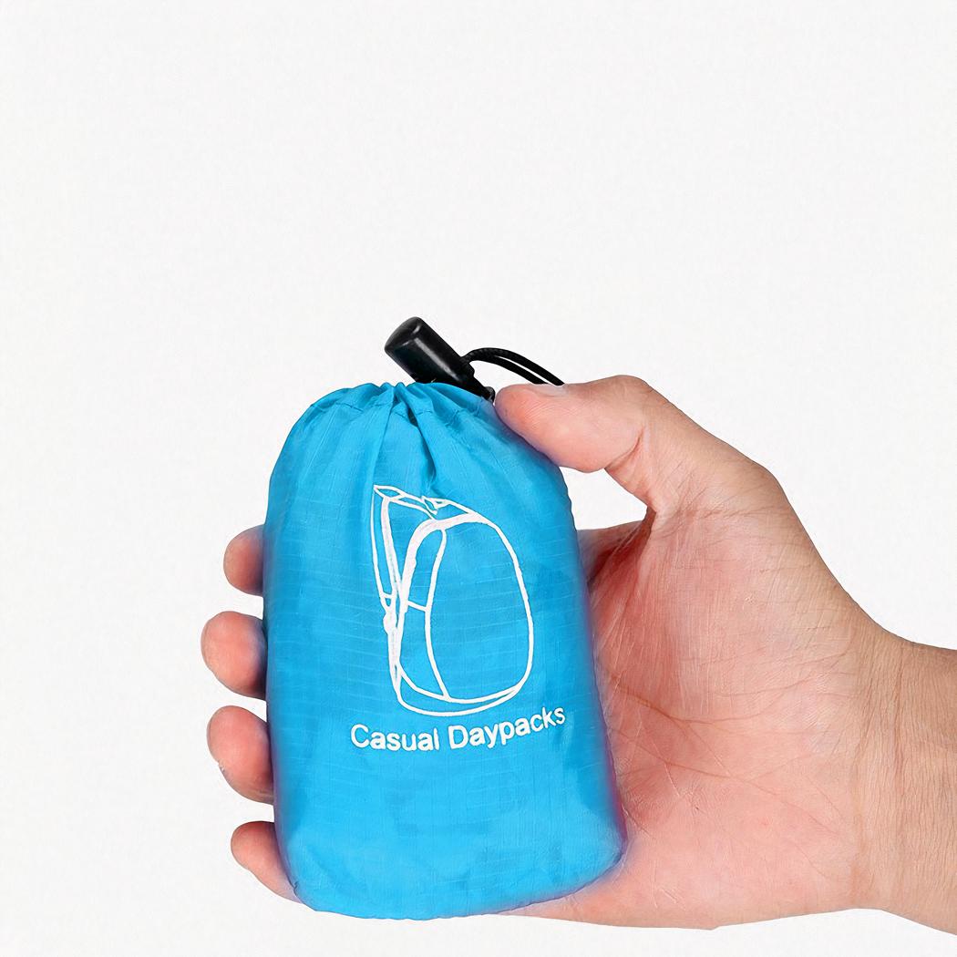 Esta mochila impermeable y plegable de color azul turquesa es perfecta para practicar deporte, hacer senderismo o viajar. Ligera e impermeable, esta mochila es fácil y práctica de transportar, con una capacidad total de menos de veinte litros para todo su equipo.
