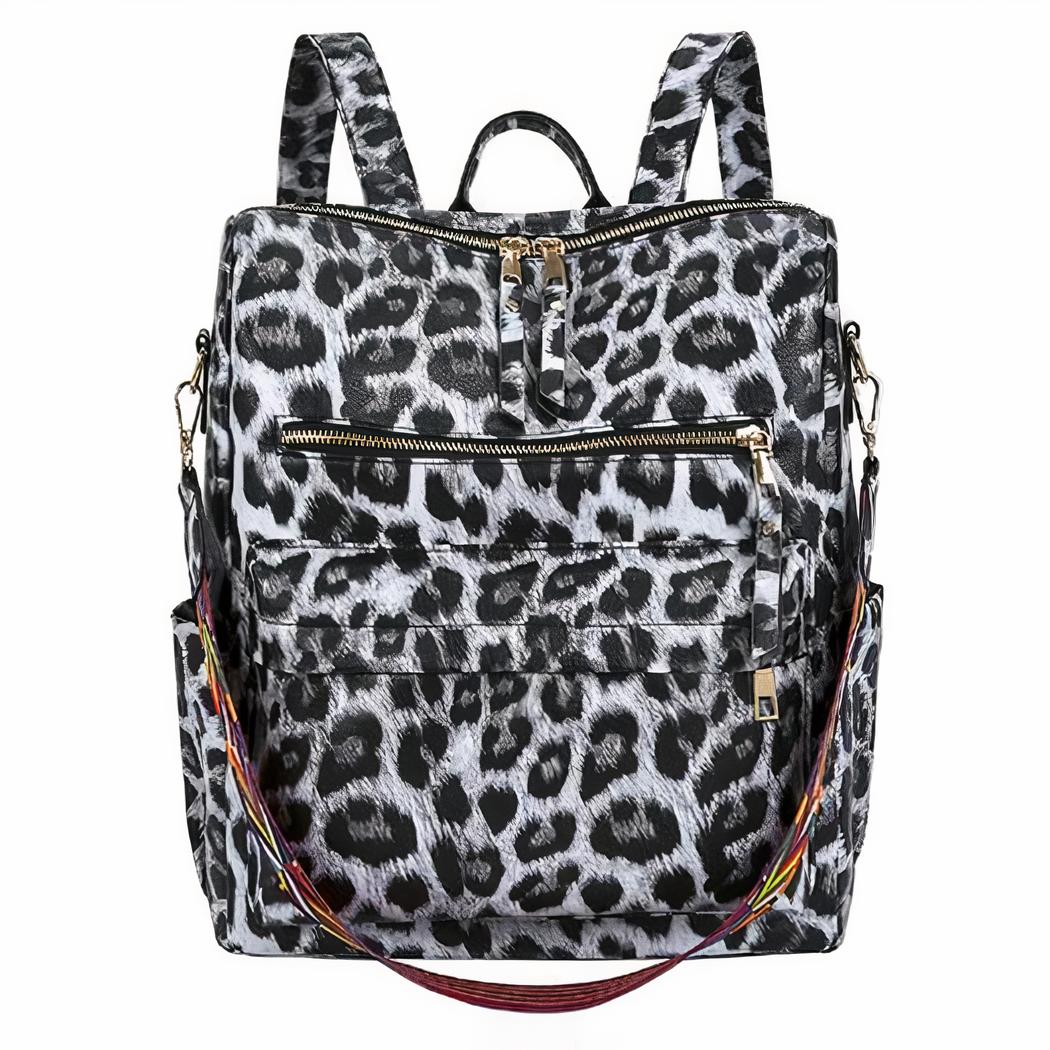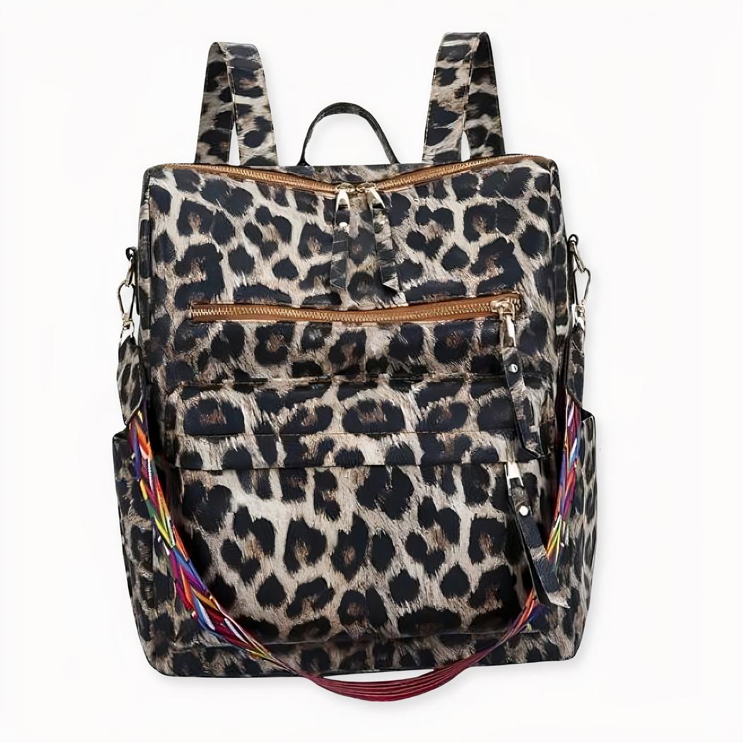 Nuestra mochila retro para mujer con estampado de leopardo es la compañera perfecta para todas sus salidas. Fabricada con esmero y calidad, es elegante y atemporal, realzada por un moderno estampado de leopardo. Dispone de un espacioso bolsillo principal y varios prácticos bolsillos exteriores.