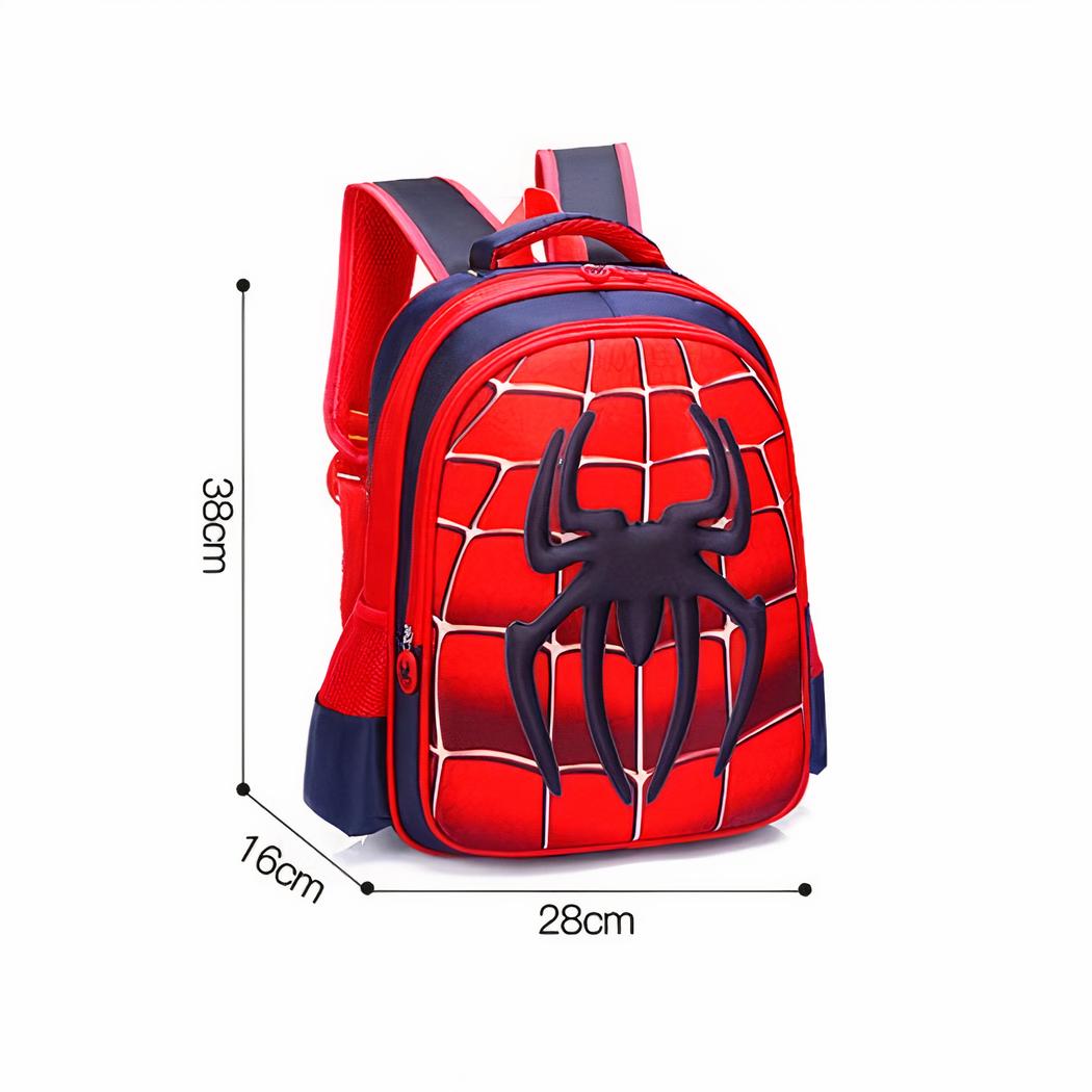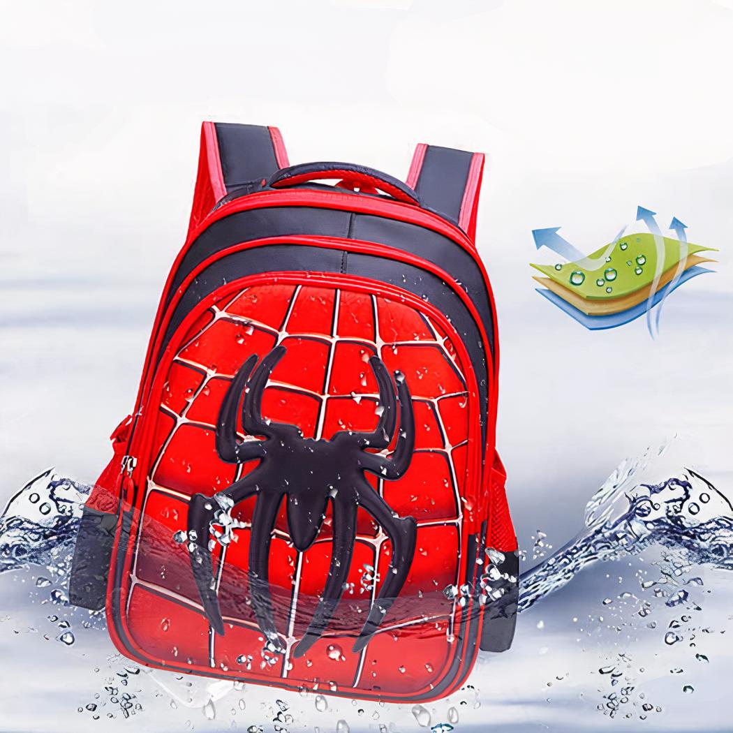 Una super mochila de Spiderman. Esta mochila está disponible en tres tamaños y es impermeable. El modelo pequeño tiene un solo compartimento, el mediano tiene un compartimento grande y un bolsillo frontal, y el modelo grande tiene un compartimento grande y dos bolsillos frontales.