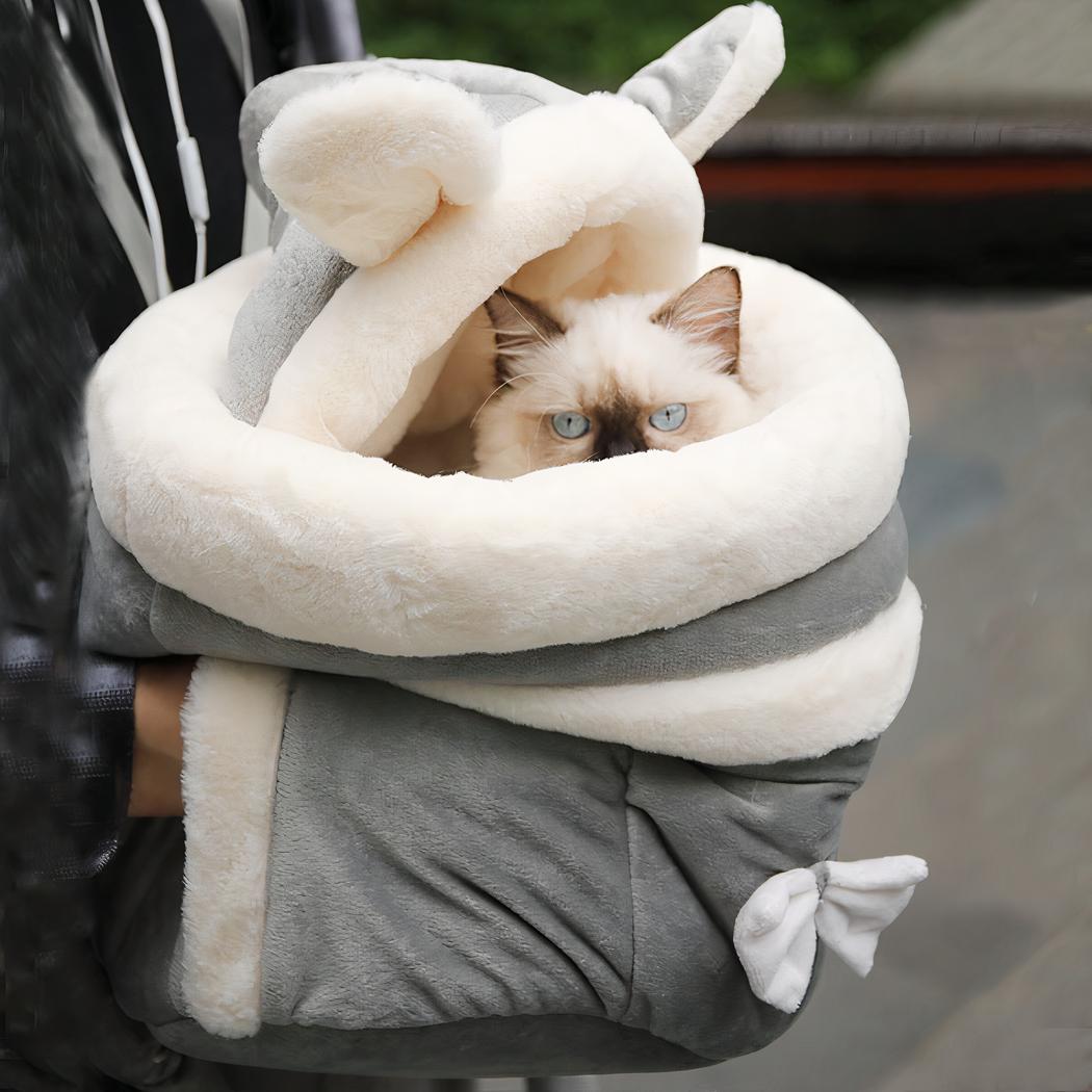 Su mascota pasará el invierno acurrucada y calentita contra usted, envuelta en su magnífica, suave y cálida bolsa de transporte para gatos. Incluso tiene bolsillos laterales para que pueda calentarse las manos y abrazar a su mascota. Le encantará este suave bolso.