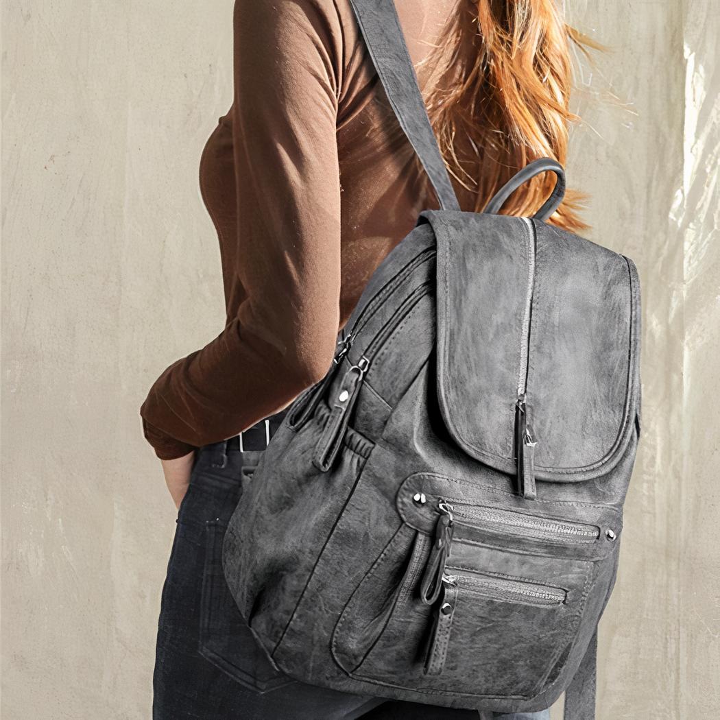 Esta bonita mochila vintage con cremallera de polipiel le acompañará en todas sus salidas y pronto se convertirá en un imprescindible de su armario. Sus numerosos bolsillos le dan un aspecto moderno y le facilitan el almacenamiento de todas sus cosas para que pueda llevarla a todas partes