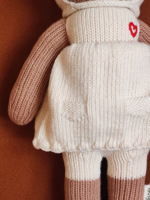 Muñeco de apego ético: 100% tejido a mano por artesanas en un taller de comercio justo en Perú con algodón certificado Oeko-tex.