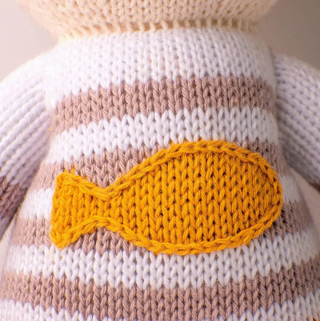 Muñeco de apego ético: 100% tejido a mano por artesanas en un taller de comercio justo en Perú con algodón certificado Oeko-tex.