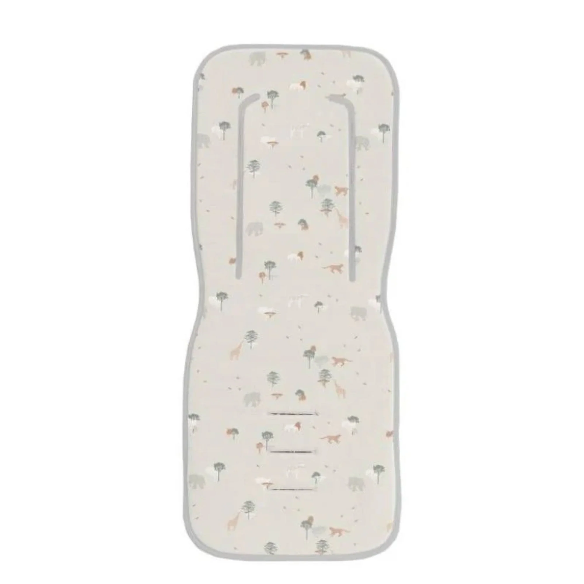 Su diseño de inspiración safari, con tonos naturales y un estilo elegante, aporta personalidad al carrito mientras protege la tapicería original frente a manchas y roces. Gracias a su formato universal y a su sistema de ajuste con cintas y goma trasera, se adapta fácilmente a la mayoría de sillas de paseo y carritos del mercado.