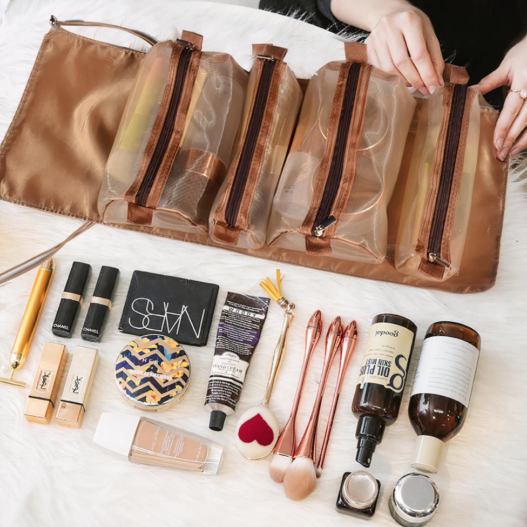 Elija este neceser de viaje tan práctico como elegante, ¡con varios bolsillos para sus utensilios de maquillaje! Es perfecto para guardar todos sus productos de maquillaje y belleza, y puede colgarse de la pared o plegarse en una bolsa para transportarlo fácilmente.
