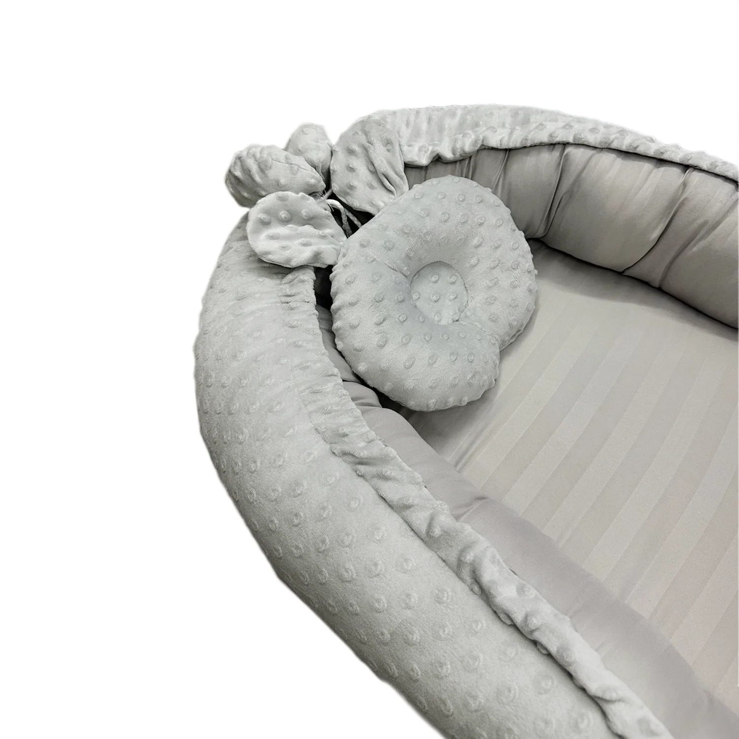 Este acogedor nido para bebé está diseñado para brindar una sensación de seguridad y calidez similar a la del vientre materno, ayudando a que tu pequeño se sienta protegido y relajado desde sus primeros días de vida. Fabricado con materiales ultra suaves y transpirables, este producto no solo destaca por su ternura, sino también por su funcionalidad.