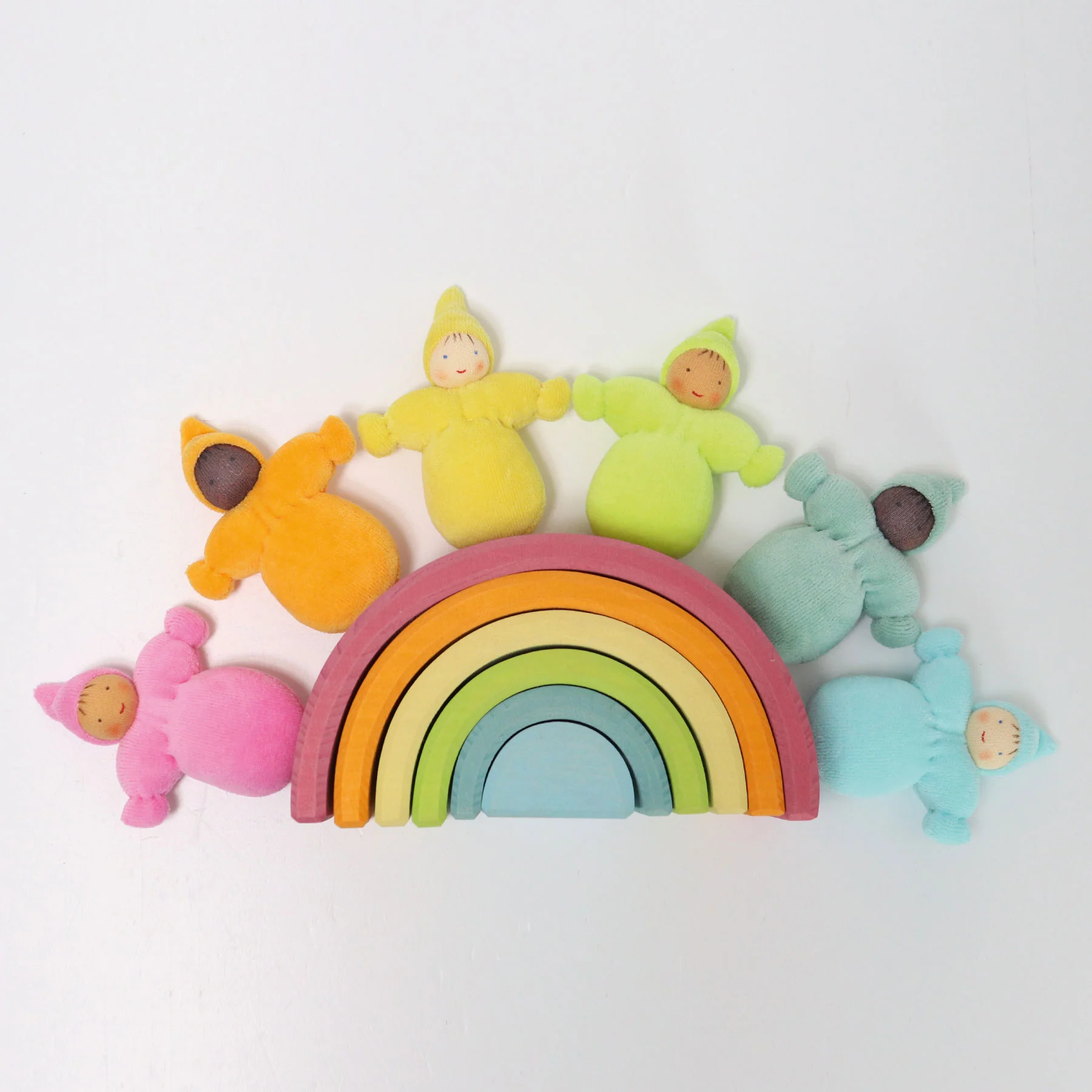 Lindos y suaves enanitos de colores realizados de manera tradicional con materiales naturales. Sus caritas están pintadas a mano con delicadeza teniendo cada gnomito una expresión única.