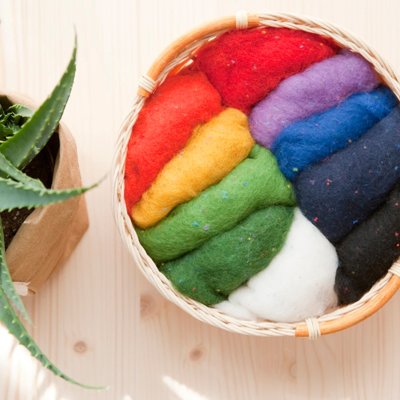 Lana cardada neozelandesa con diminutas motitas de algodón de colores. Ideal para afieltrado, tanto en seco como en húmedo. Los personajes que crees con esta lana quedarán de lo más colorido y serán, sin duda, especiales.