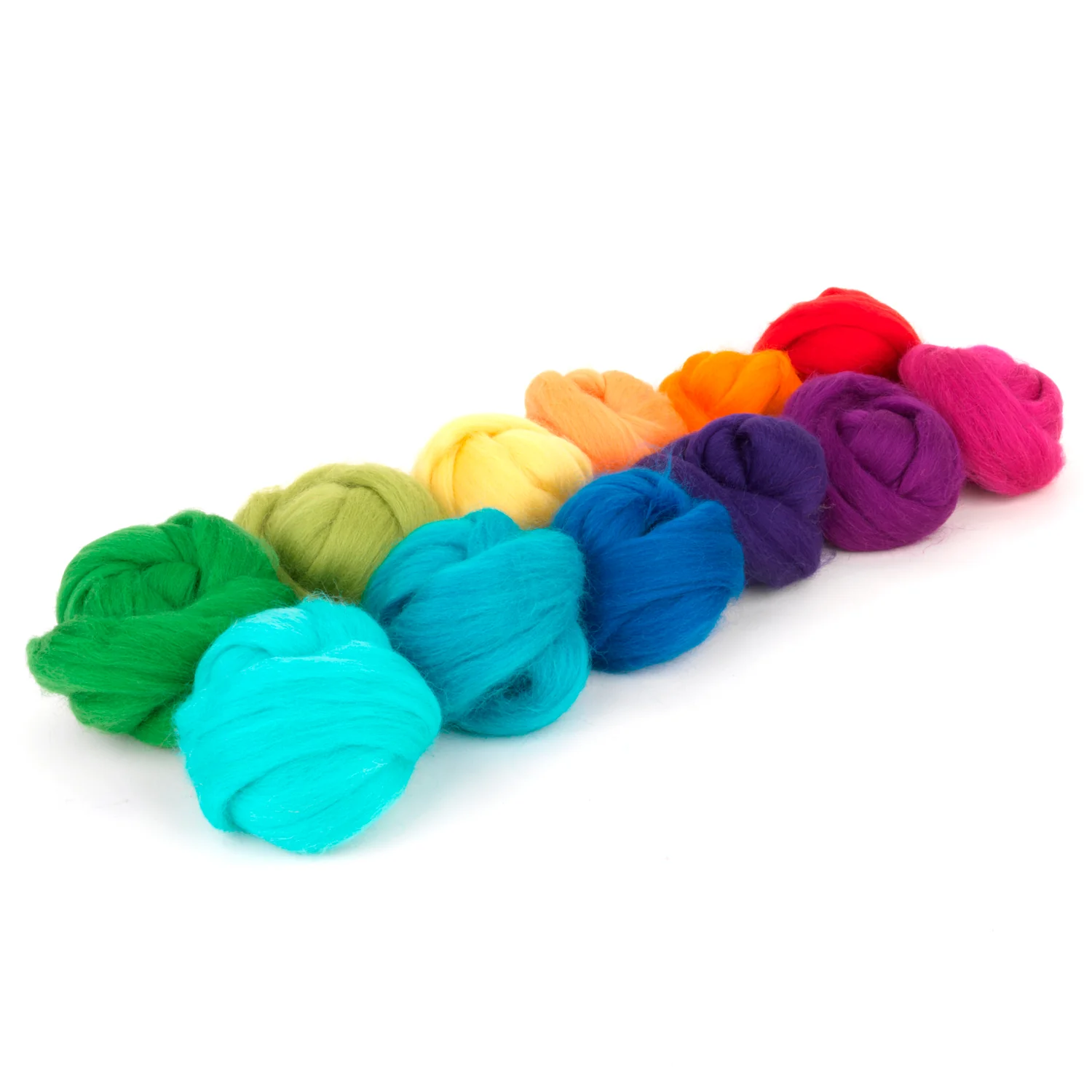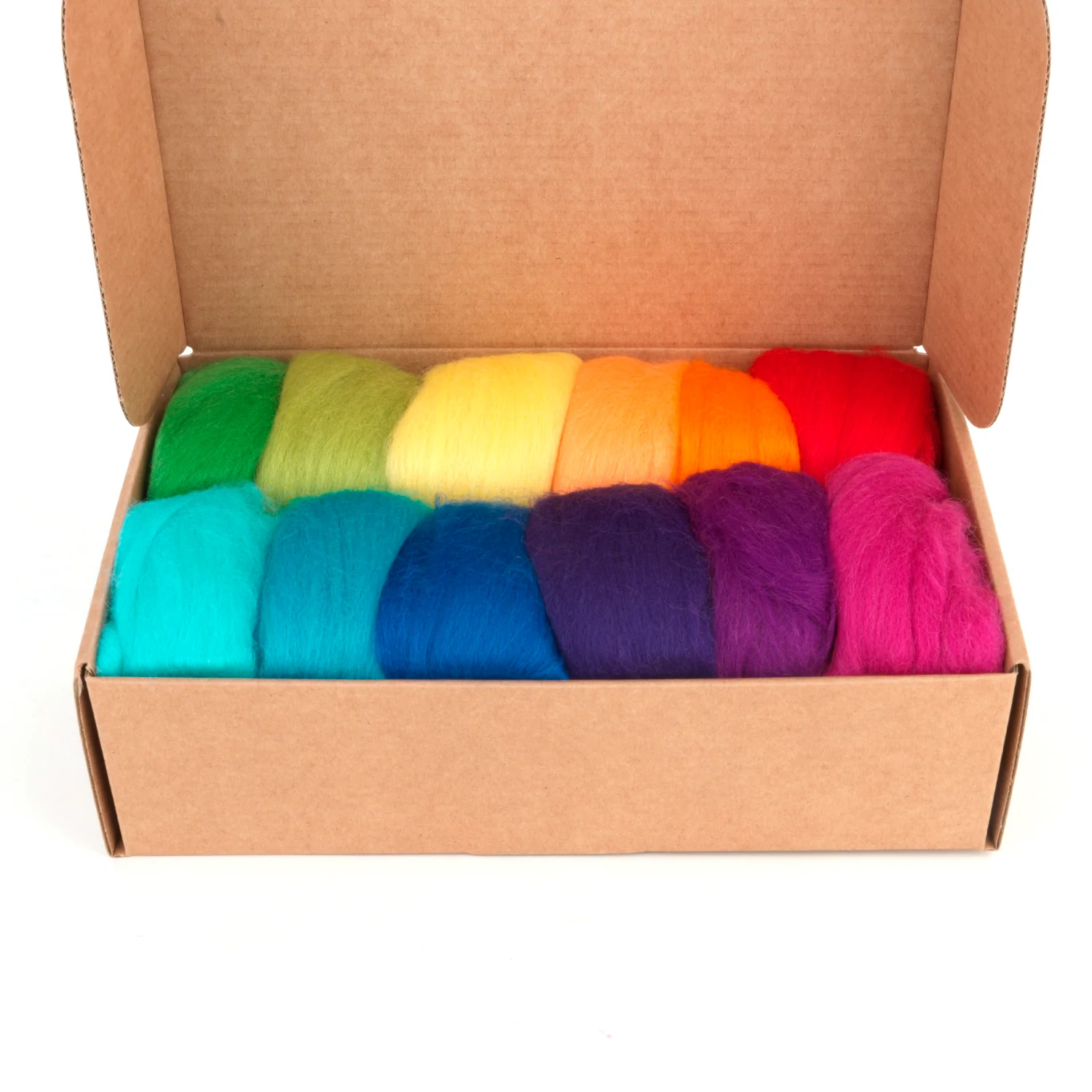 Hemos realizado este pack con lana merina sudamericana tratada en Alemania. La lana cardada y peinada en cinta está libre de sustancias nocivas ni metales pesados.