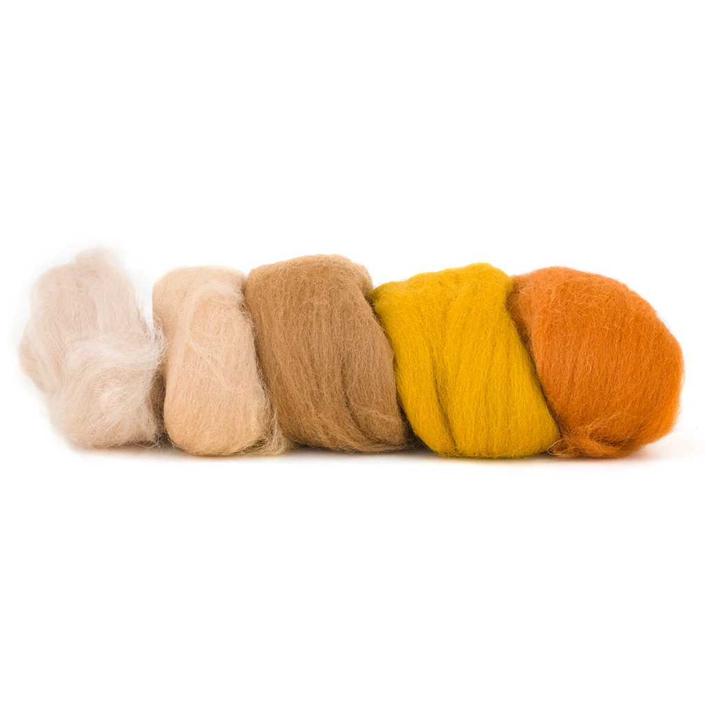 Pack de 5 colores con 10 gramos aproximadamente por color, 50 gramos en total. Te van a encantar los colores y trabajar con esta lana.