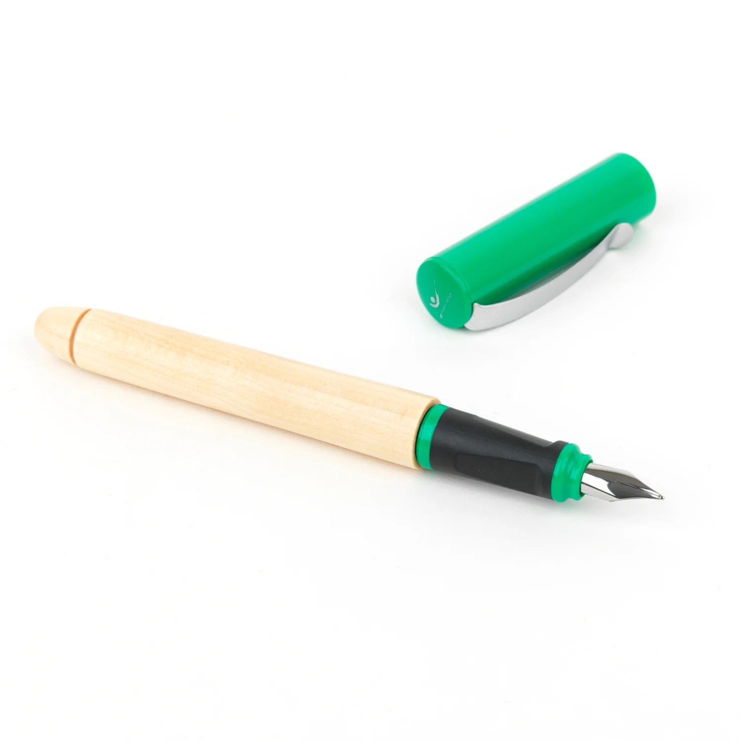 Estilográfica de alta calidad de madera y plástico de color verde con hendiduras para la correcta utilización de la pluma y para la adquisición de una postura relajada en la escritura.