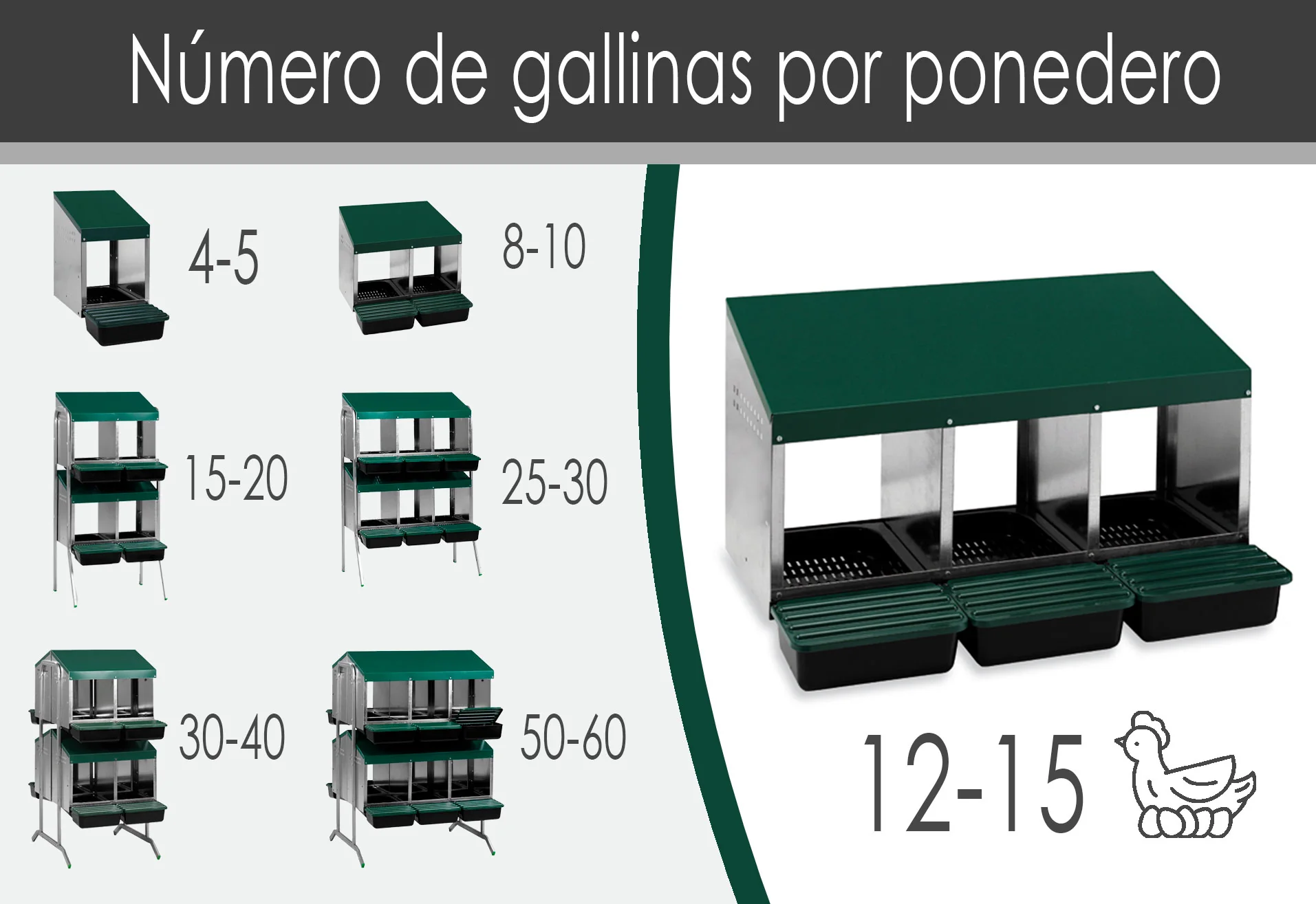 - Para aproximadamente 12 gallinas sirve para a gallinas, proporciona mayor intimidad a las gallinas y además gracias a su ESCAMOTEADOR mantiene los huevos siempre limpios y evita que las gallinas se los coman.