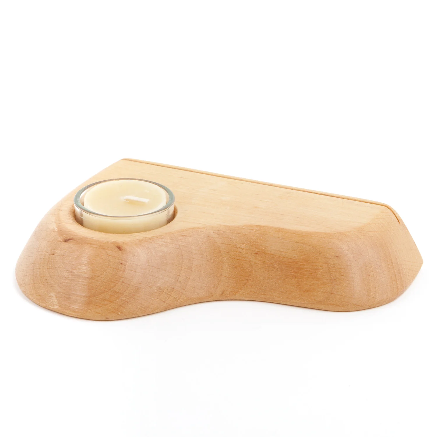 Incluye el soporte de cristal y una vela de té realizada artesanalmente con cera de abeja 100%.