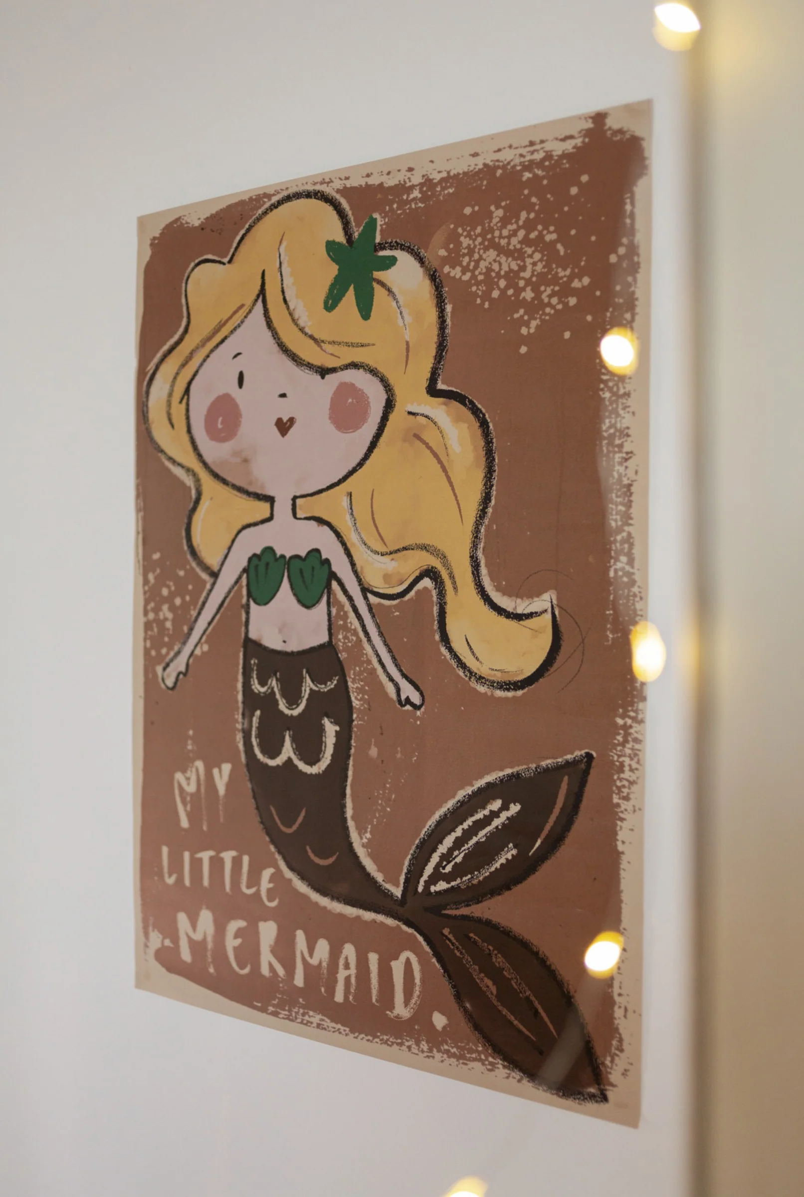 Poster Mermaid, ilustrado por Studio Loco, con bellos colores suaves. Un verdadero punto de atracción en la habitación.
