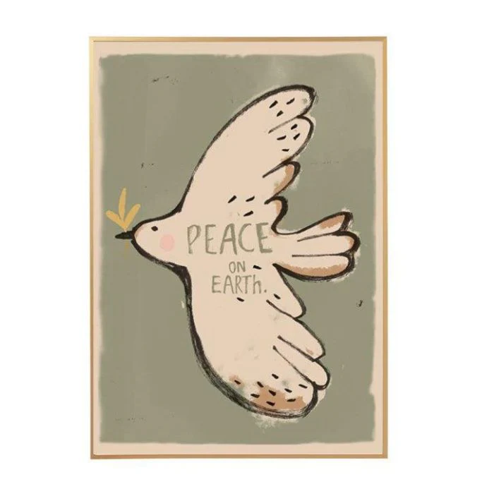 «Traiga tranquilidad al espacio de su hijo con el póster ‘Peacebird: Paz en la Tierra’ de Studioloco, un diseño que promueve la armonía global.