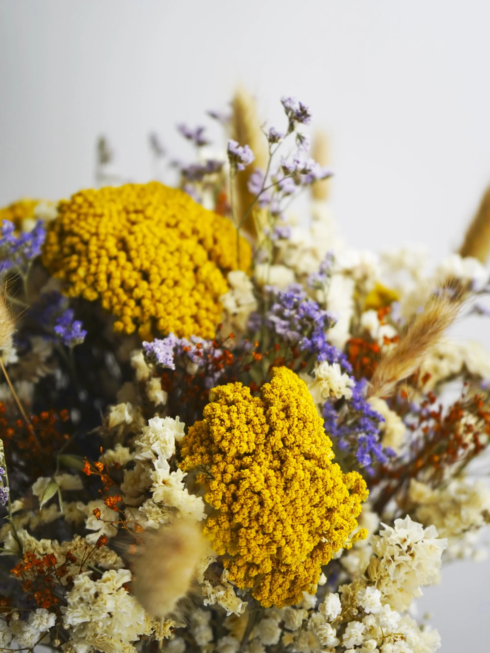 En resumen, mientras que las flores secas resaltan la autenticidad de la flor en su estado natural, las flores preservadas ofrecen una alternativa que conserva la frescura y suavidad originales, proporcionando una estética duradera y vibrante.