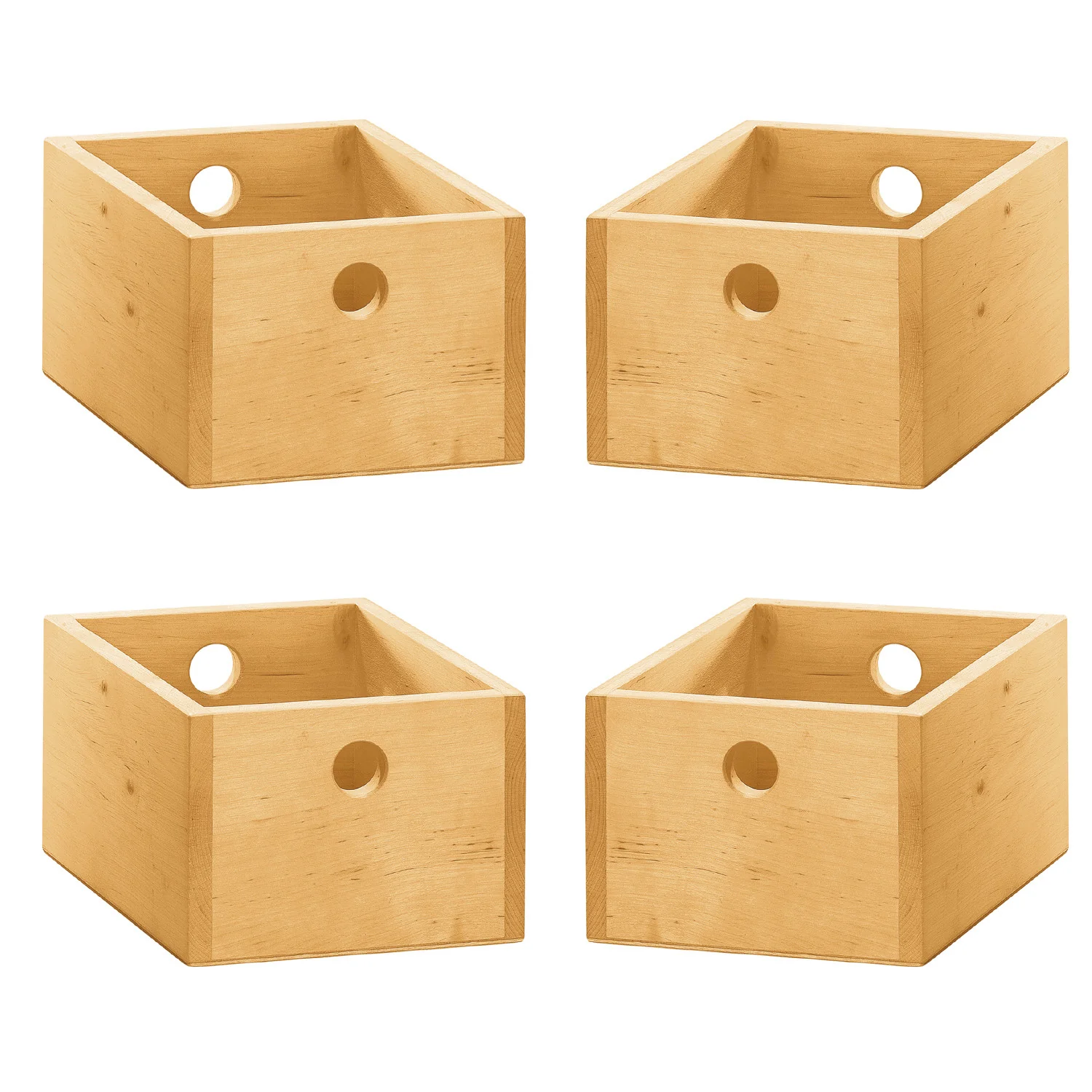 Cuatro cubos super prácticos para mantener las estanterías ordenadas. Fabricados en madera maciza de aliso ecológica y trabajada con el aceite Livos.