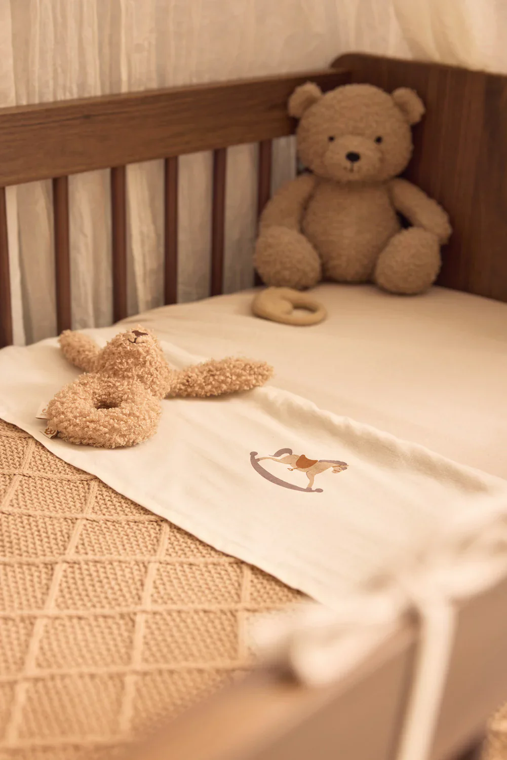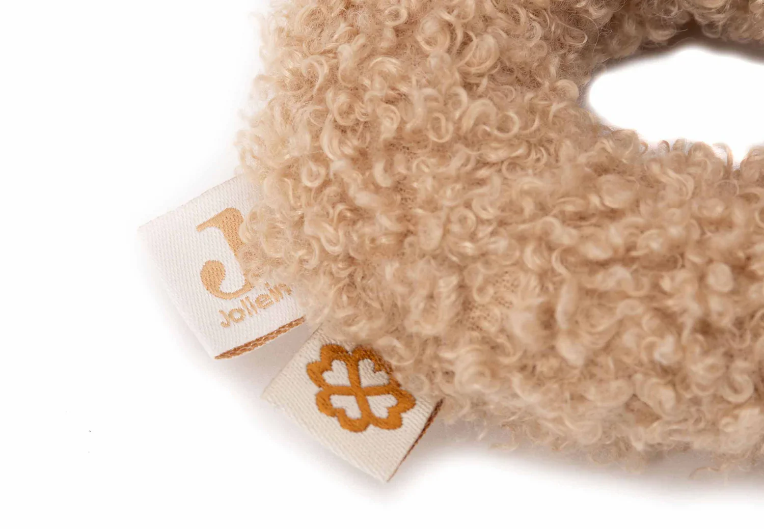 Este sonajero conejito está diseñado para brindar alegría al bebé durante horas. Elaborado con tela bouclé color galleta, ofrece una textura suave y agradable al tacto. El hocico con forma de corazón bordado le da un encanto único y delicado.