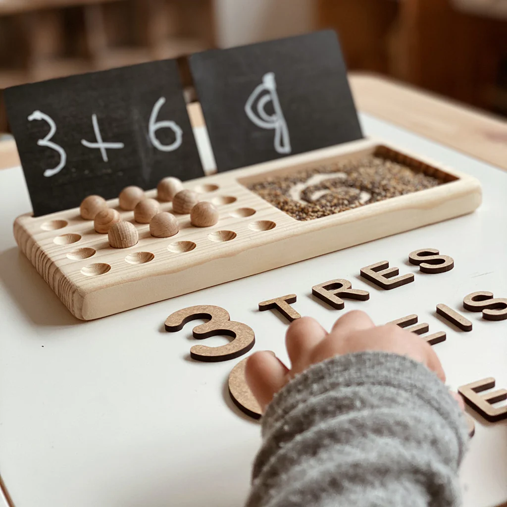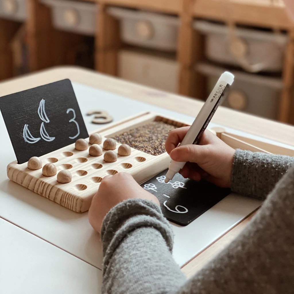 Suma, resta, escribe, borra, coloca las bolitas, dibuja en la arena. Este material manipulativo será el entretenimiento de los pequeños de casa.
