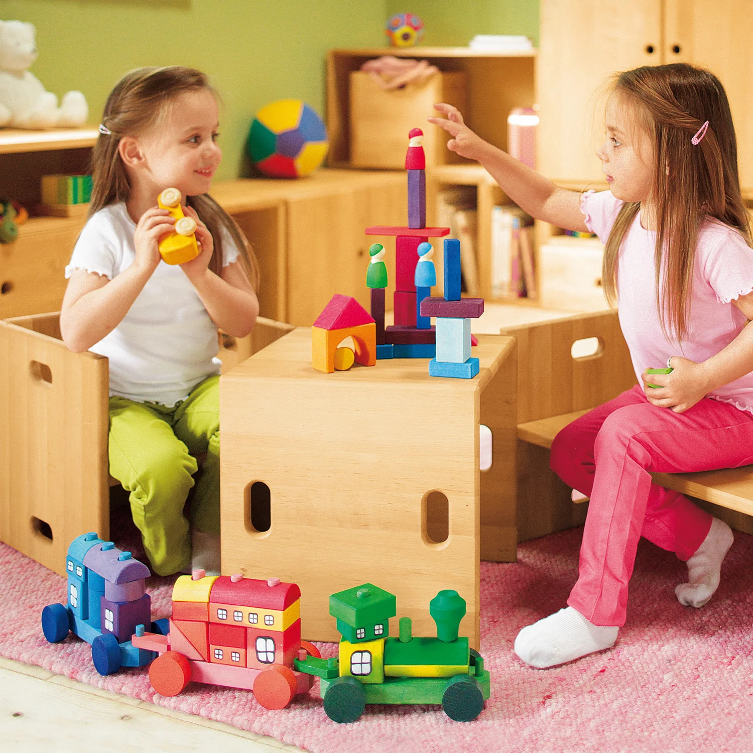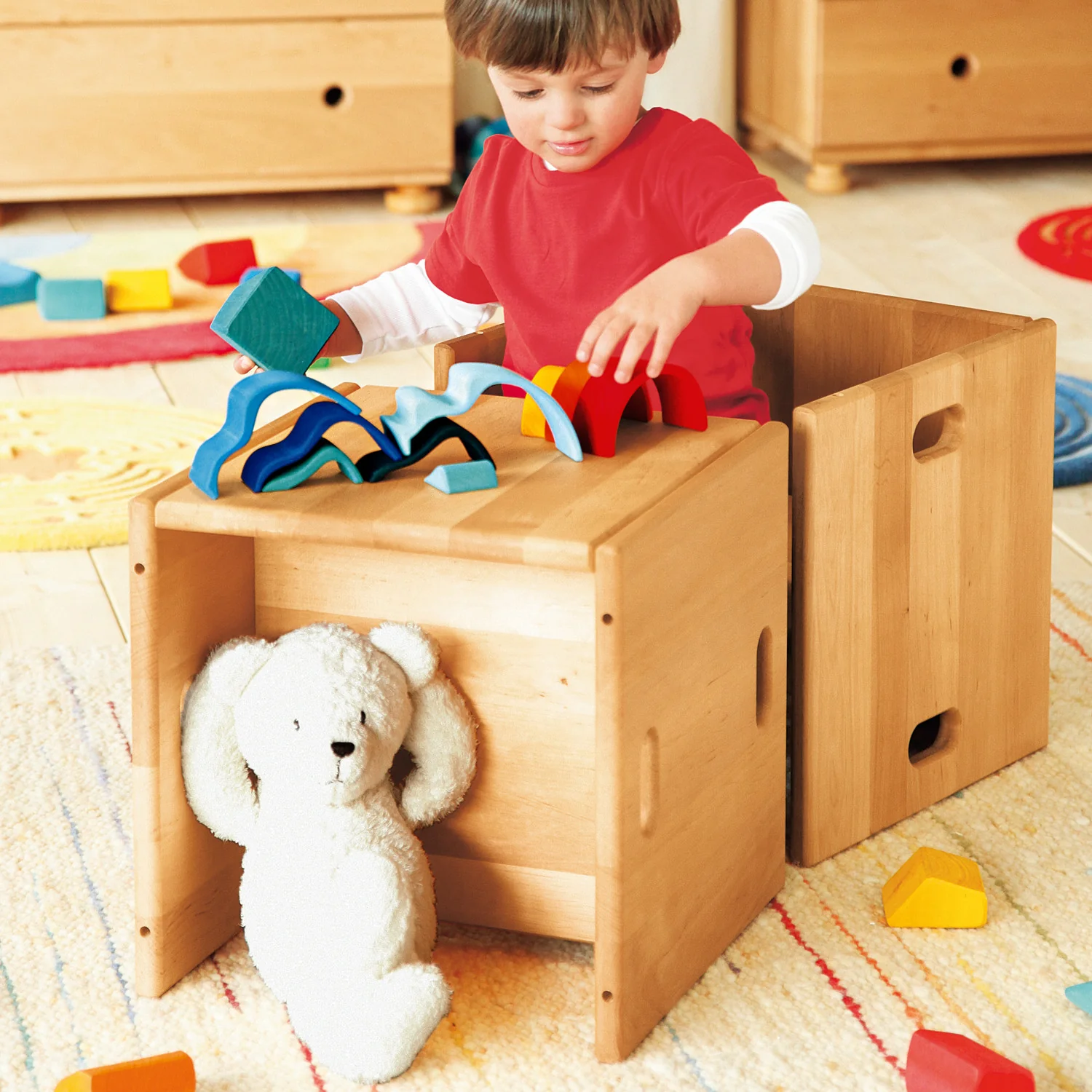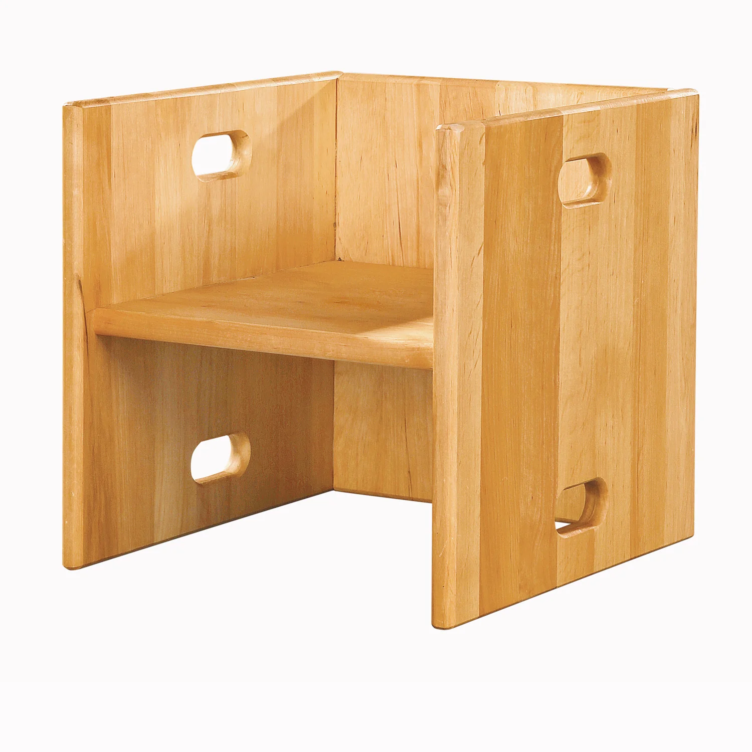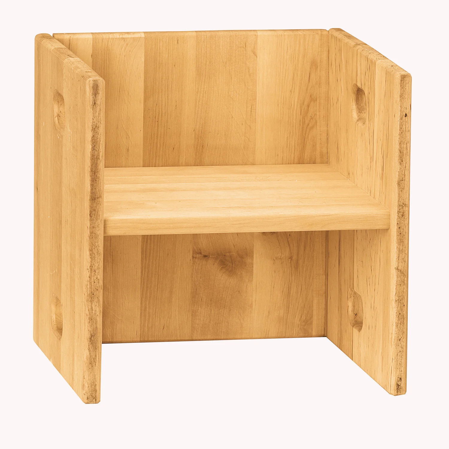 Este cubo con dos alturas: 17 cm y 19 cm se puede usar de mesa o taburete. Con dos taburetes o más se puede armar una estantería.