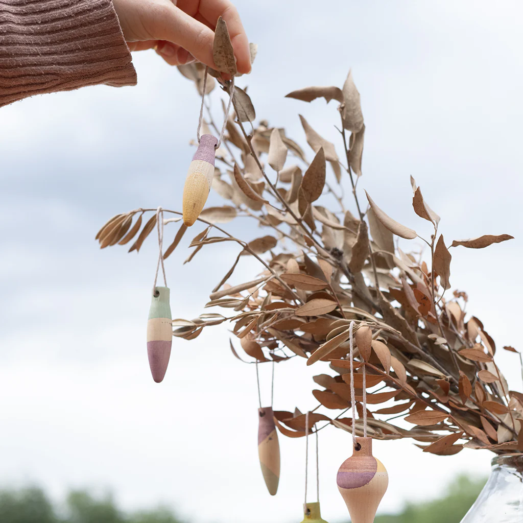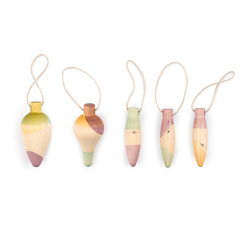 Esta encantadora caja contiene 4 figuras de madera de diferentes tamaños y formas. Cada una de ellas está pintada a mano. ¡Son una maravilla!. Podrás colgarlas en el árbol de Navidad, en una puerta o lugar especial.