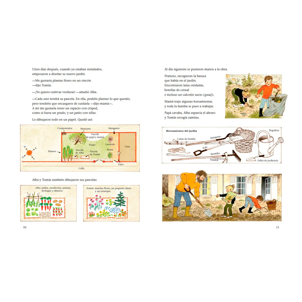 Alba y Tomás se mudan a una casa nueva. Están muy ilusionados y preparan el jardín, lo limpian, deciden qué plantar y aprenden a cuidarlo. Observaremos cómo cambia su jardín en cada estación.